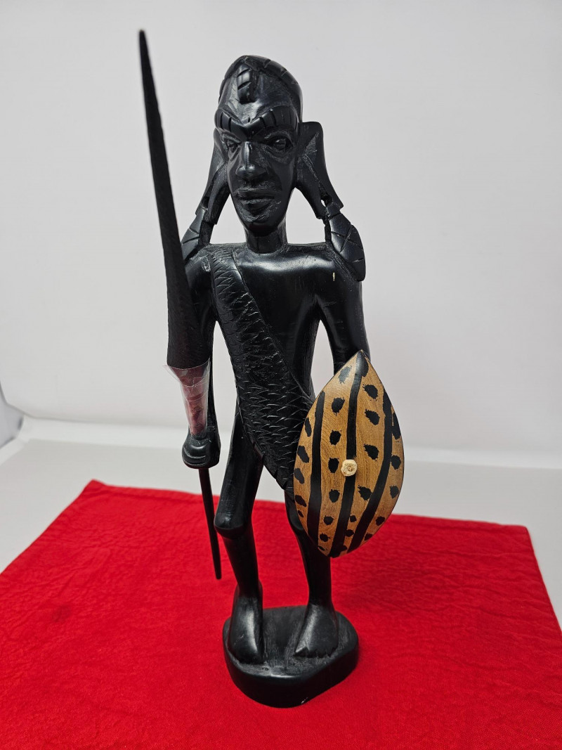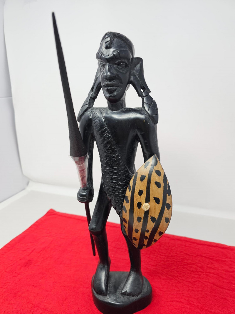 Lot # 53 - Vintage African Hand Carved Traditional Warrior Wood Sculpture
