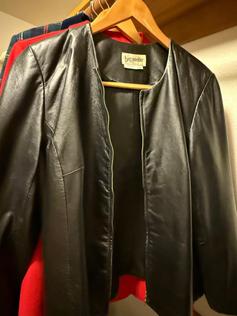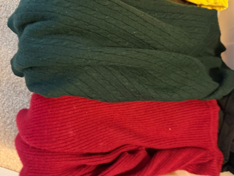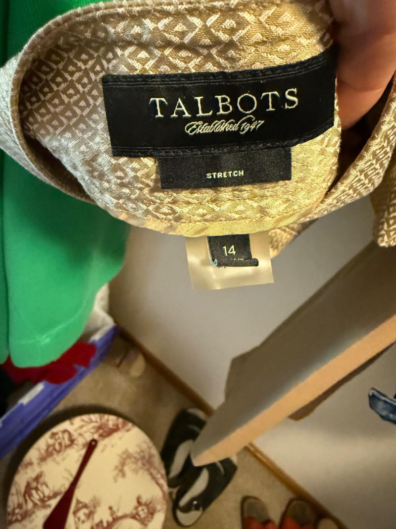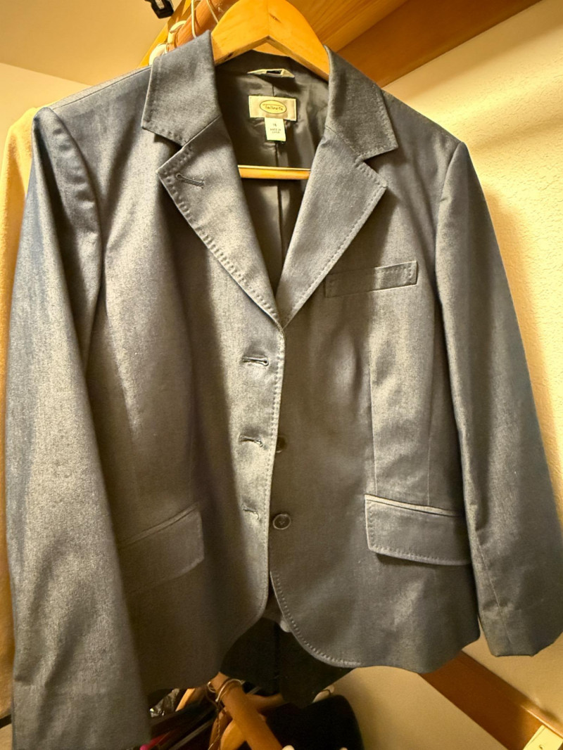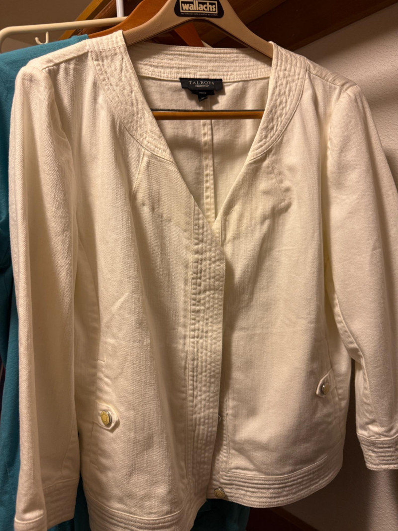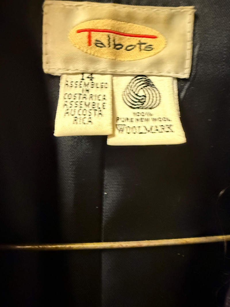 Women’s L/XL Wardrobe of Talbots and More Talbots (lots of) Lands End Calvin Klein Pendleton Susan Small Anne Klein Leather jacket Polos, T shirts, camis, dresses, bathing suits, wool and cashmere sweaters, wool suit jackets.