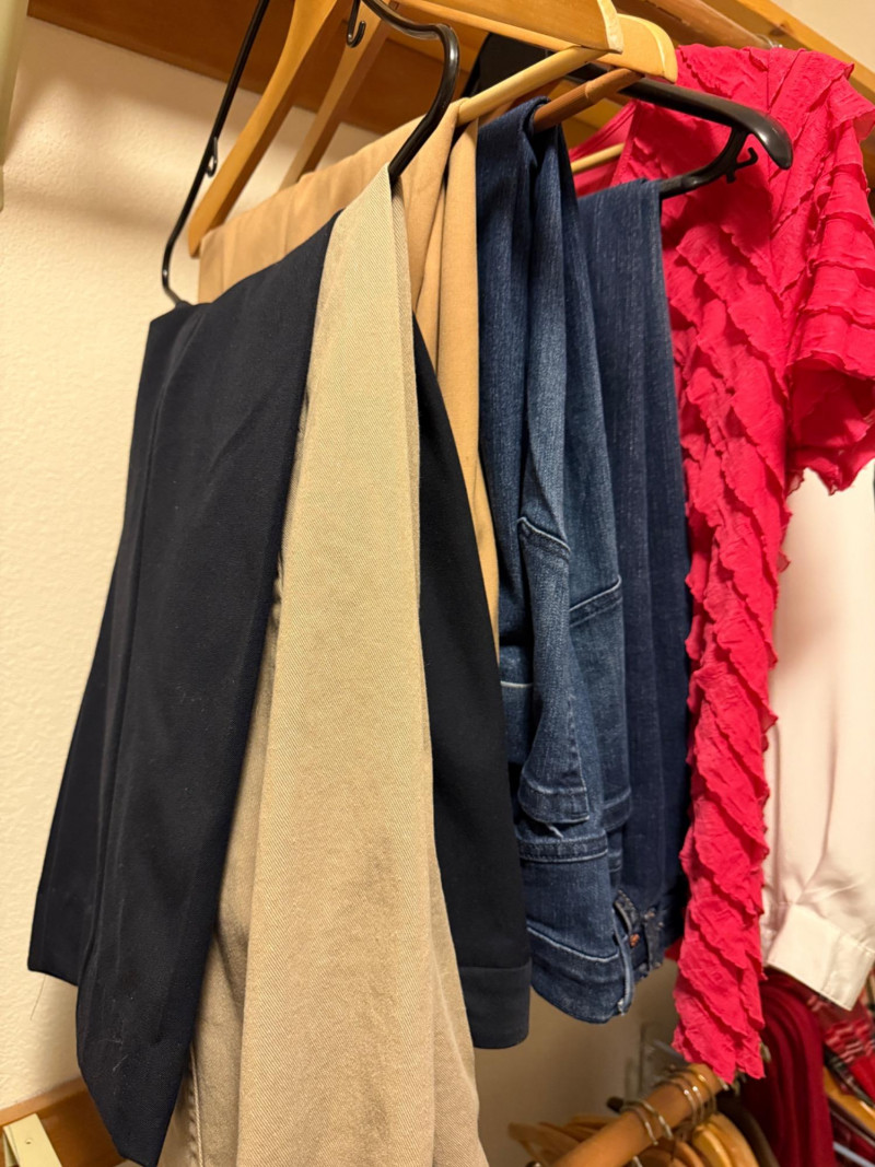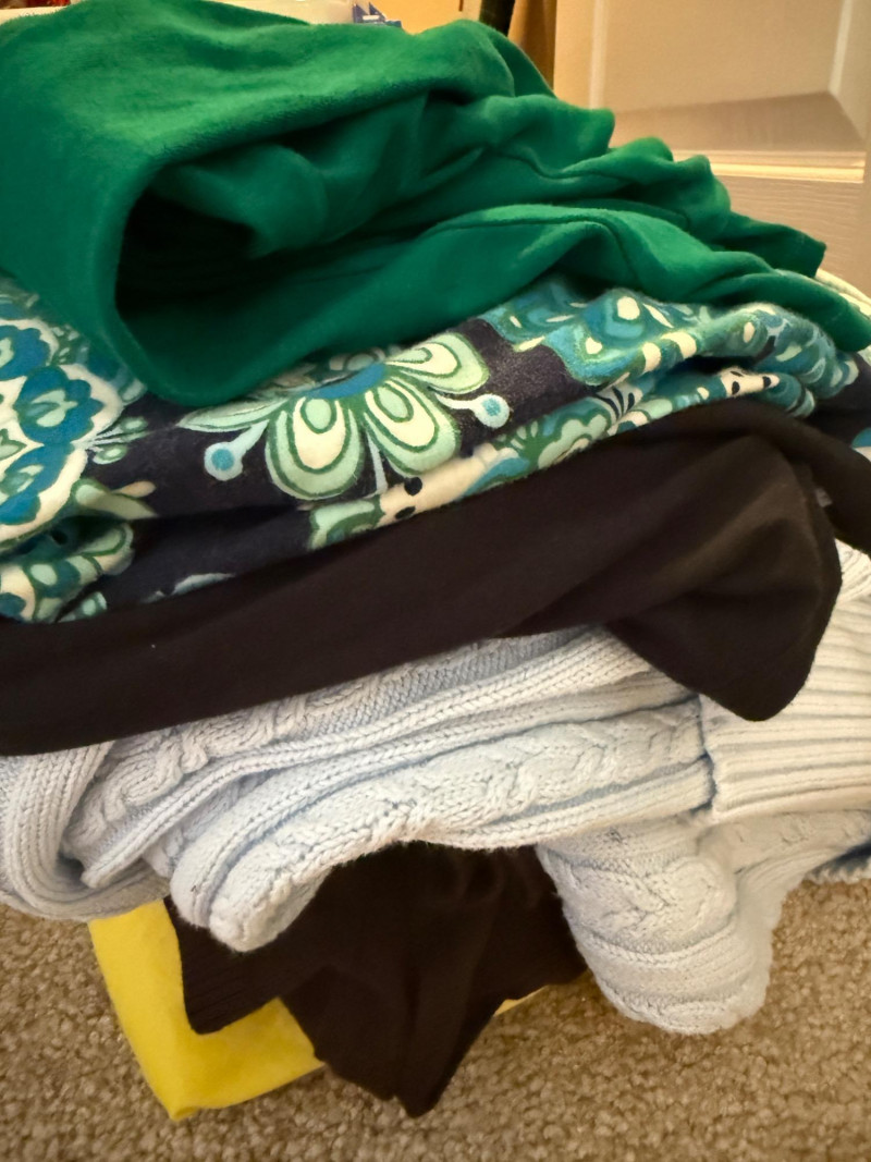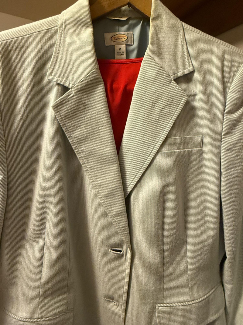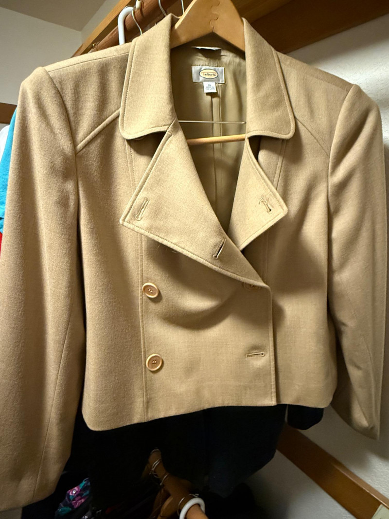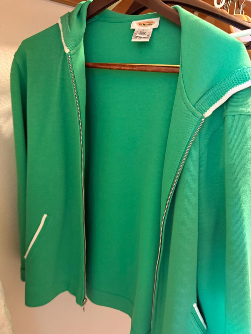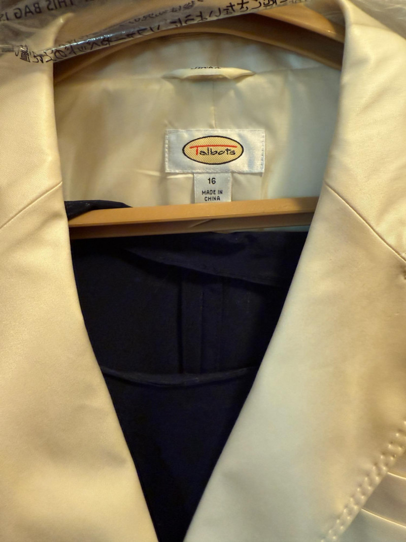 Women’s L/XL Wardrobe of Talbots and More Talbots (lots of) Lands End Calvin Klein Pendleton Susan Small Anne Klein Leather jacket Polos, T shirts, camis, dresses, bathing suits, wool and cashmere sweaters, wool suit jackets.