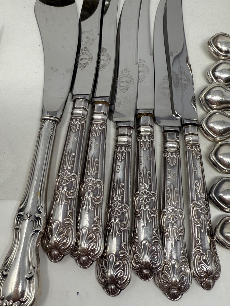 Sterling Silver Spoon & Flatware Sets Sheffield England is stamped on the vertical knives WB & S EP and a star are stamped on the knife.