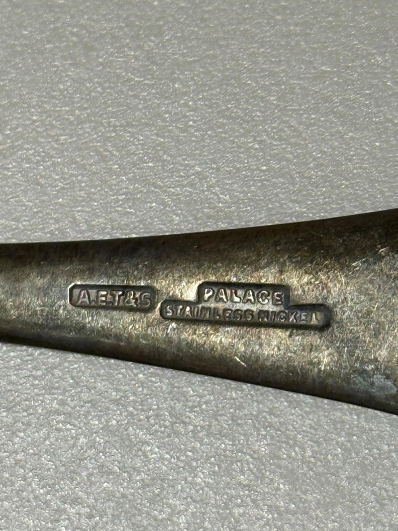 AET&S Palace Stainless Nickle stamped on 18 forks and 10 spoons
