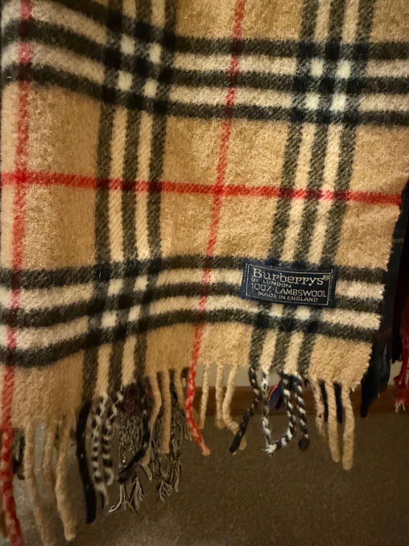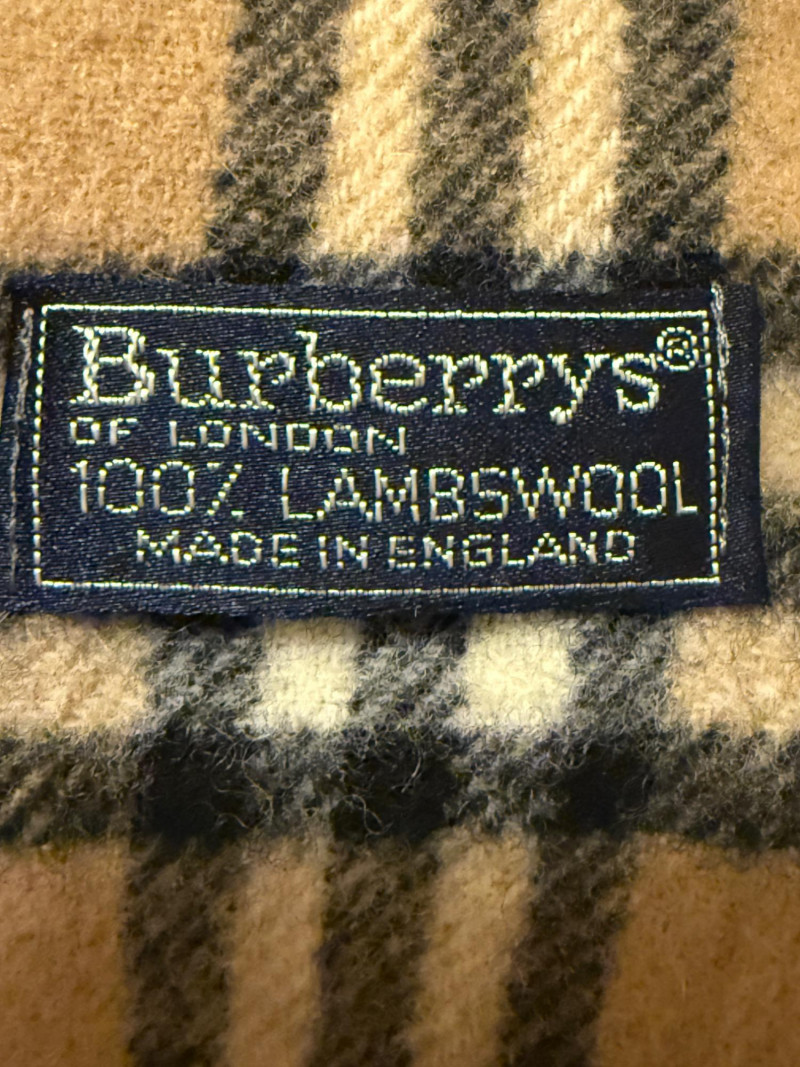 "Burberrys" is an older branding for Burberry, a luxury fashion house known for its iconic check patterns and high-quality accessories Vintage Burberry’s Lambswool Scarf & 10 Others