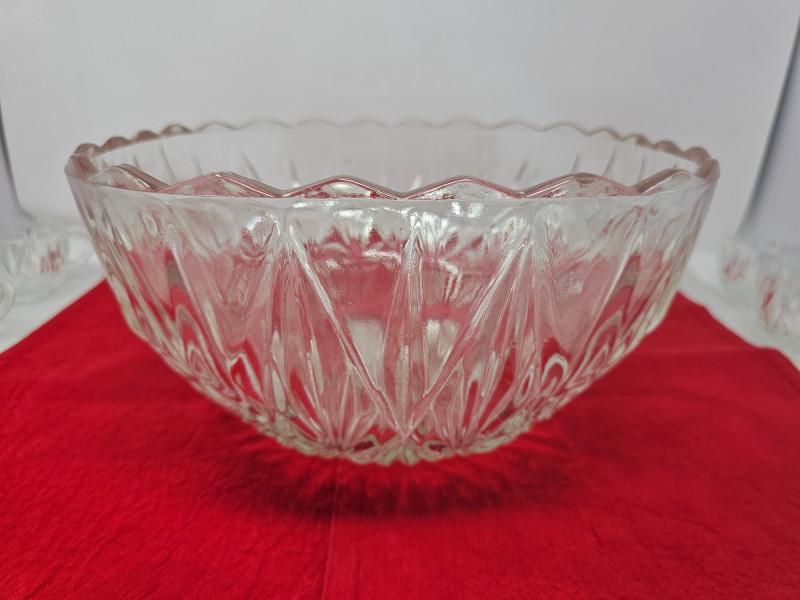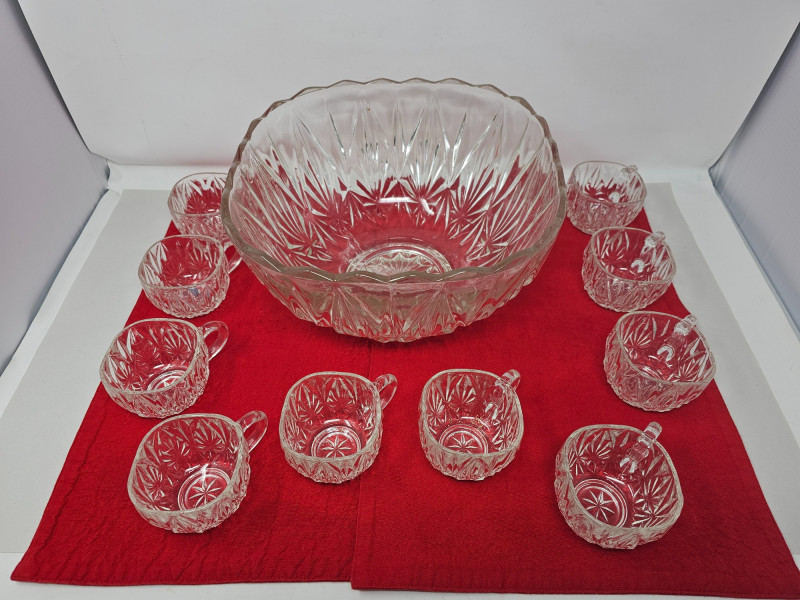 Lot # 75 - Vintage Hazel Atlas Williamsport Clear Pressed Glass Punch Bowl Set
