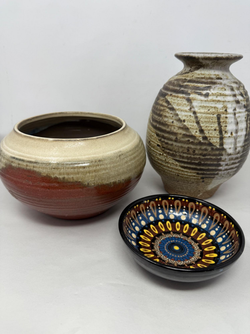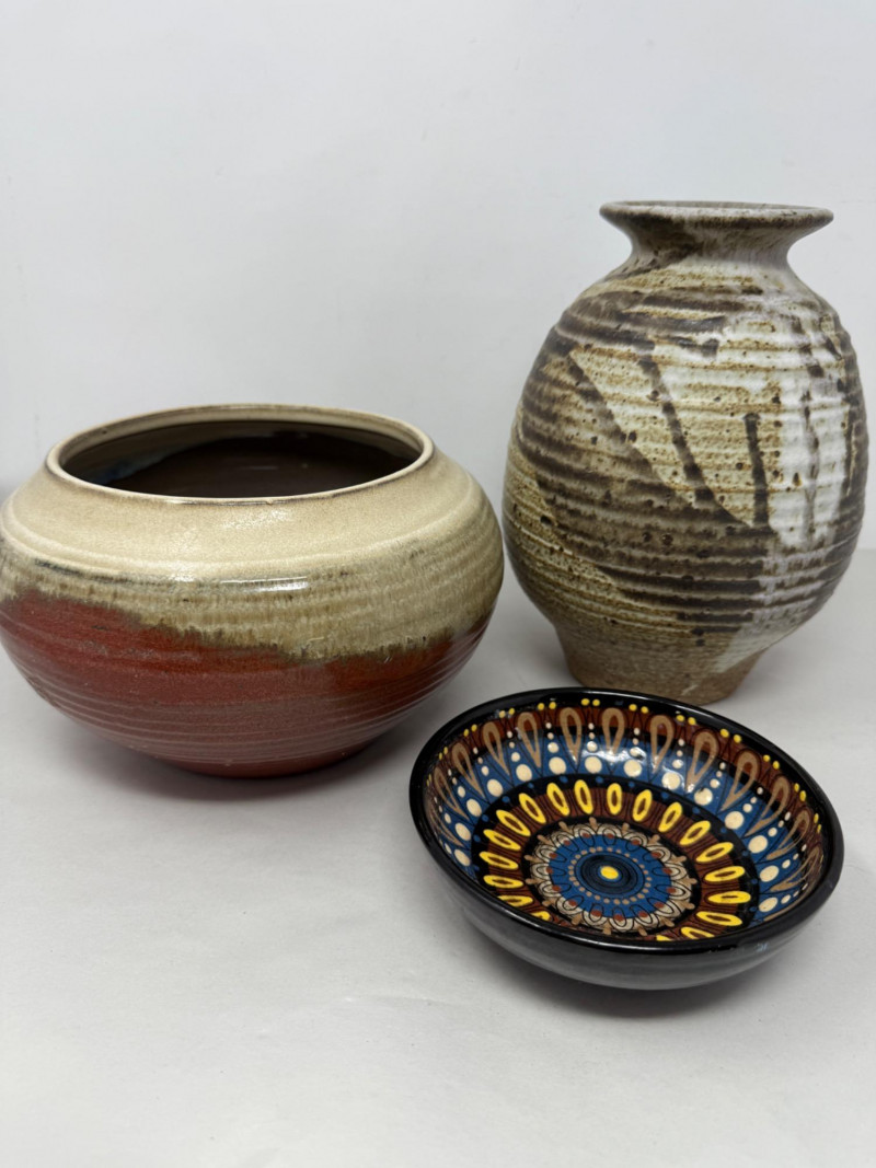(3) Piece Pottery Collection 5x9” bowl and 9x5” vase