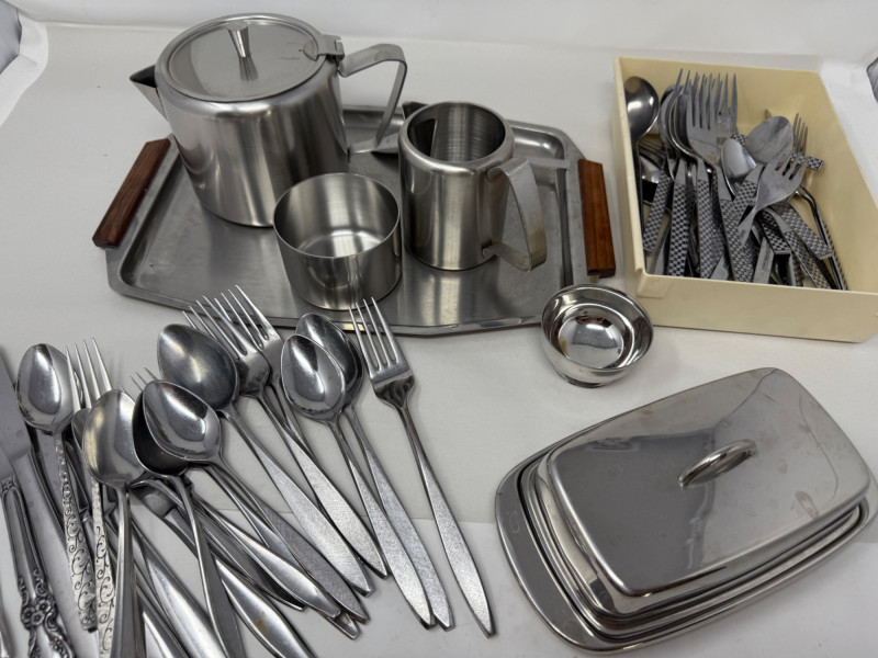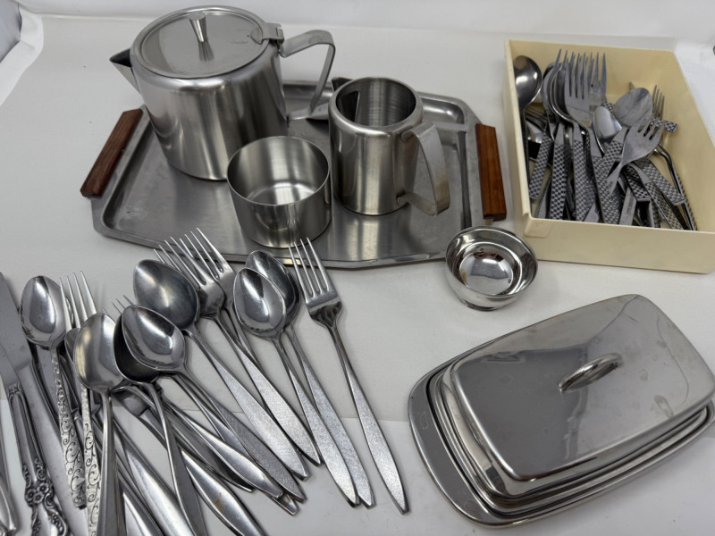 Lot # 80 - Stainless Collection - MCM Tray & Service - Flatware +