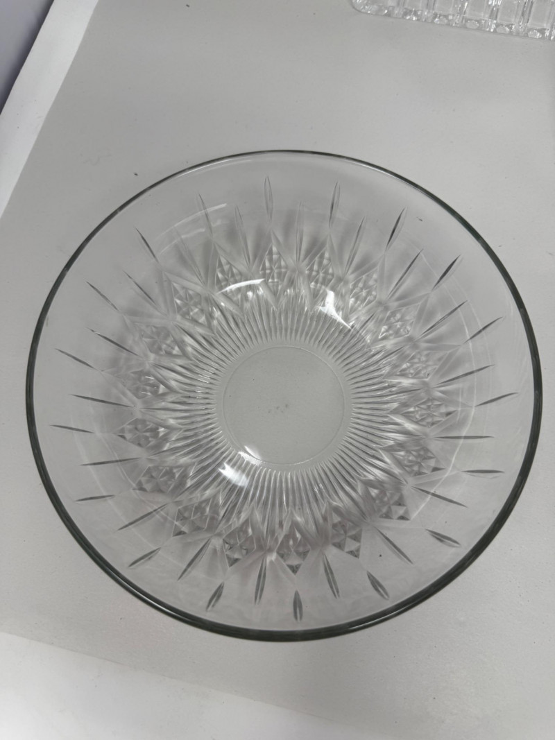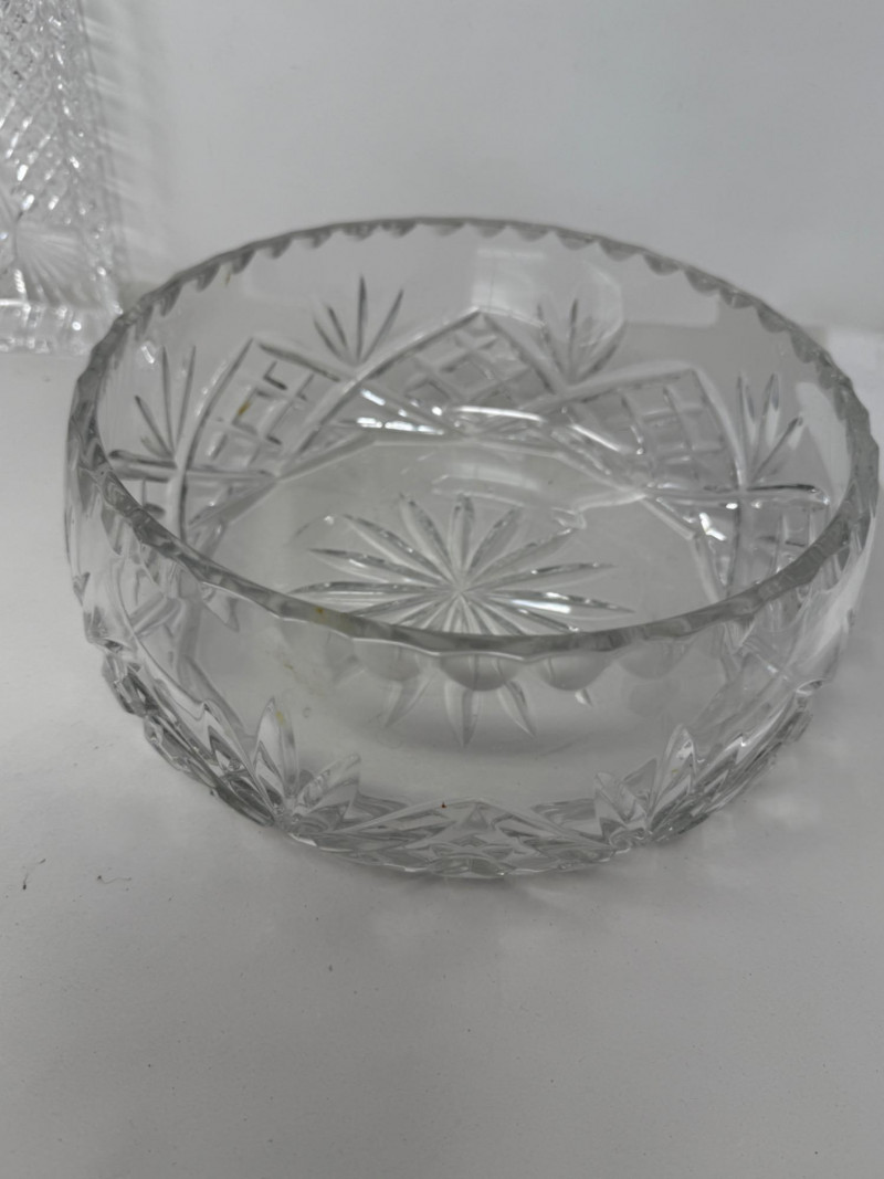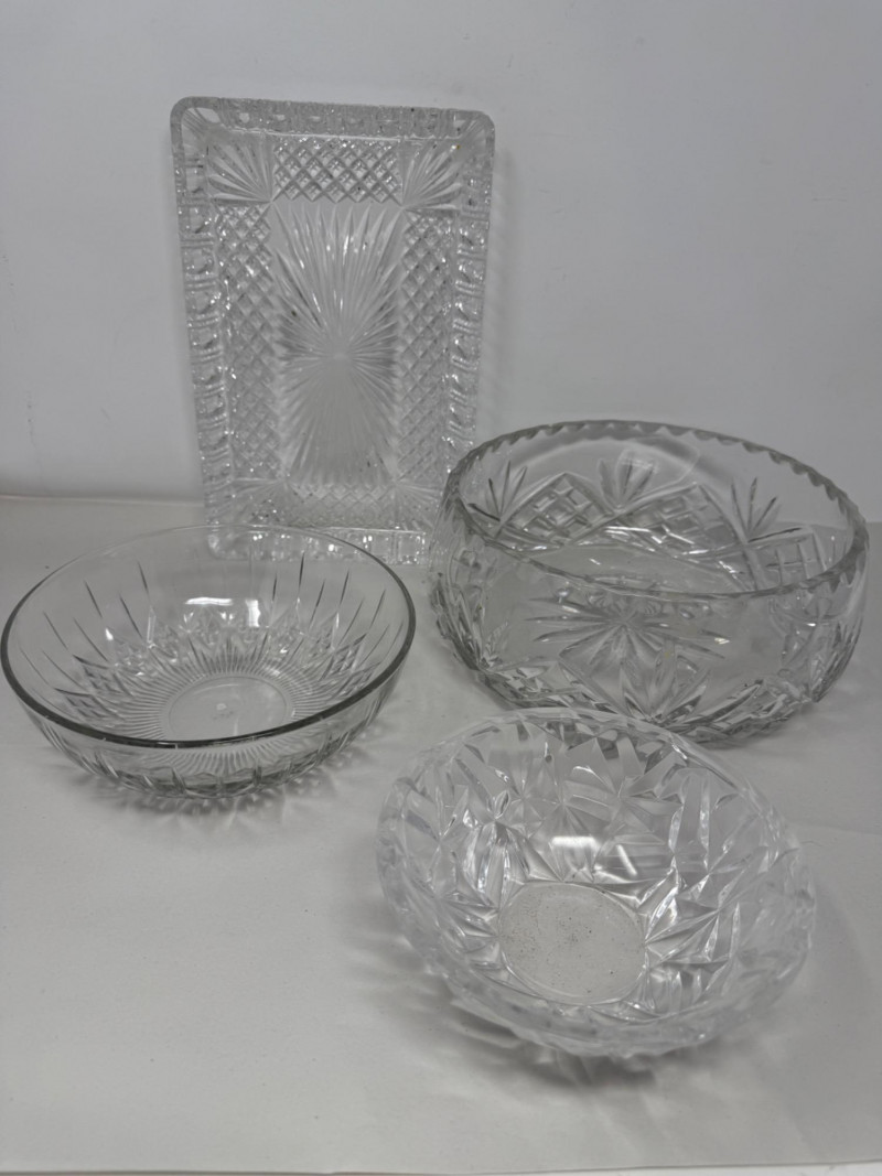 3 Crystal Bowls and Vanity Tray Tray is 7x11” Largest bowl is thick cut Crystal 9.5”x4”