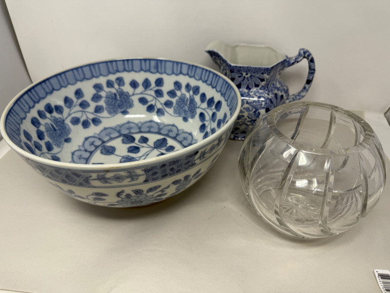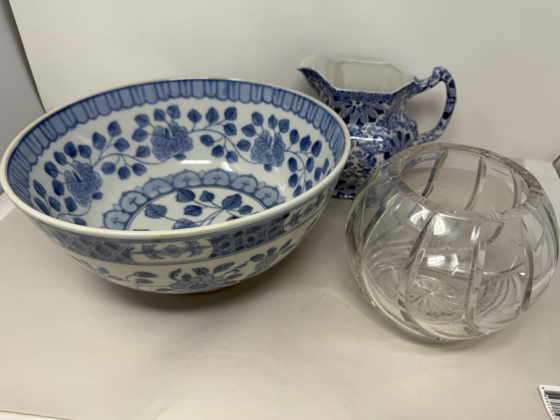 Lot # 90 - Julia Crystal Bowl - Chinese Bowl & Chung Wood & Son Pitcher