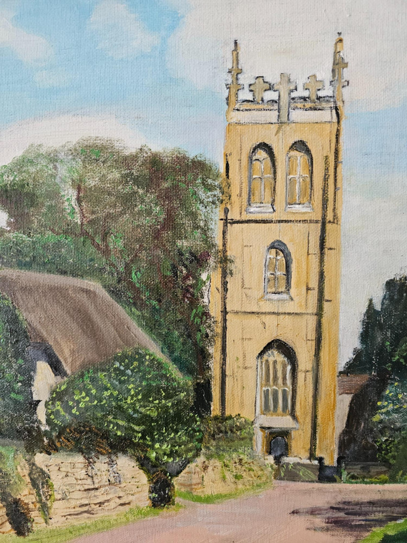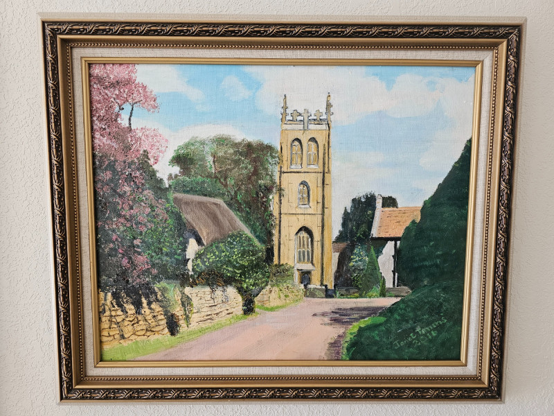 Lot # 107 - Original Oil Painting Of "Father Brown's Parrish" By Janet Timms