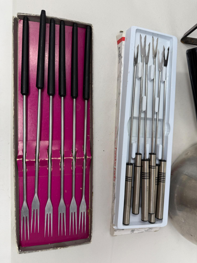 Lot # 110 - (2) Vintage Fondue Pots & Forks