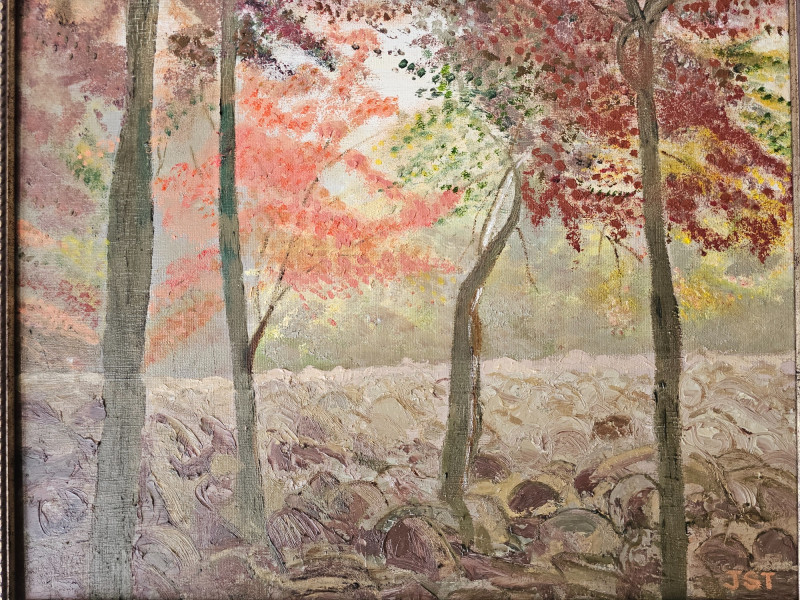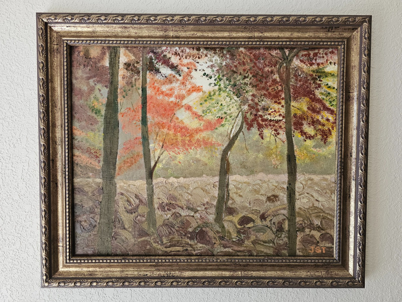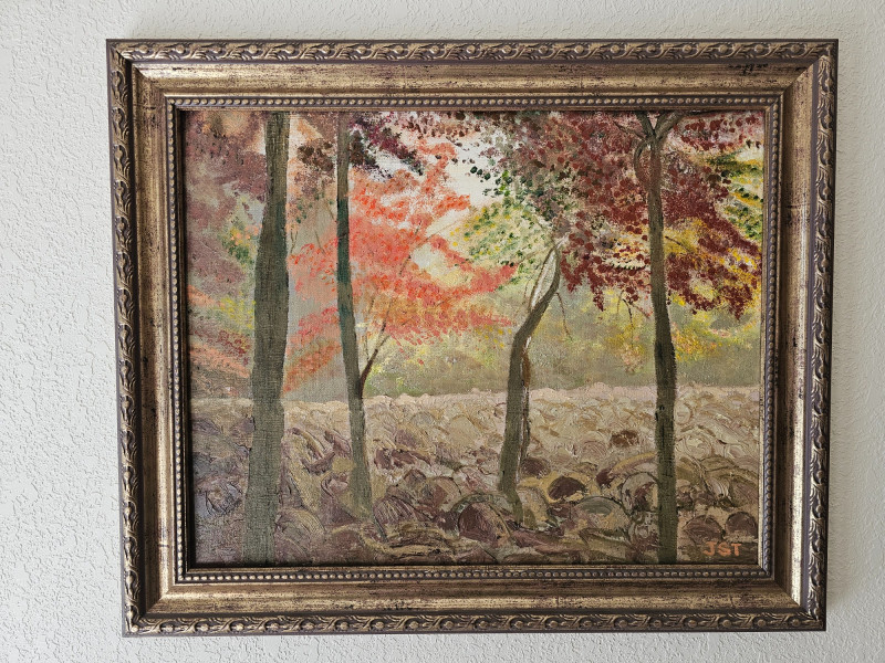 Original Oil Painting "Hickory Run" in Boulder Field, Pennsylvania By Local Olympia Artist Janet Timms Oil on canvas Framed 20"T x 24"W