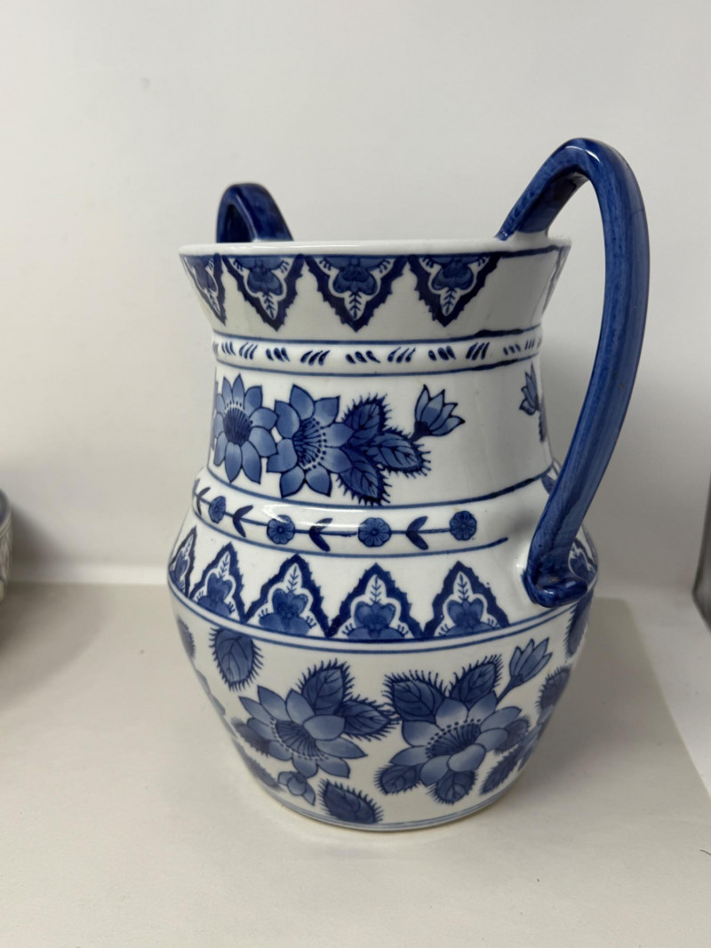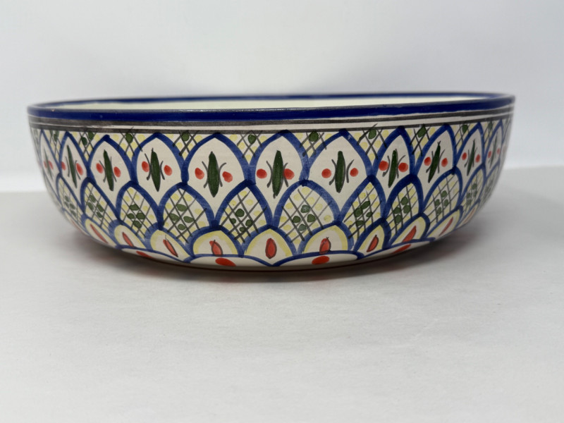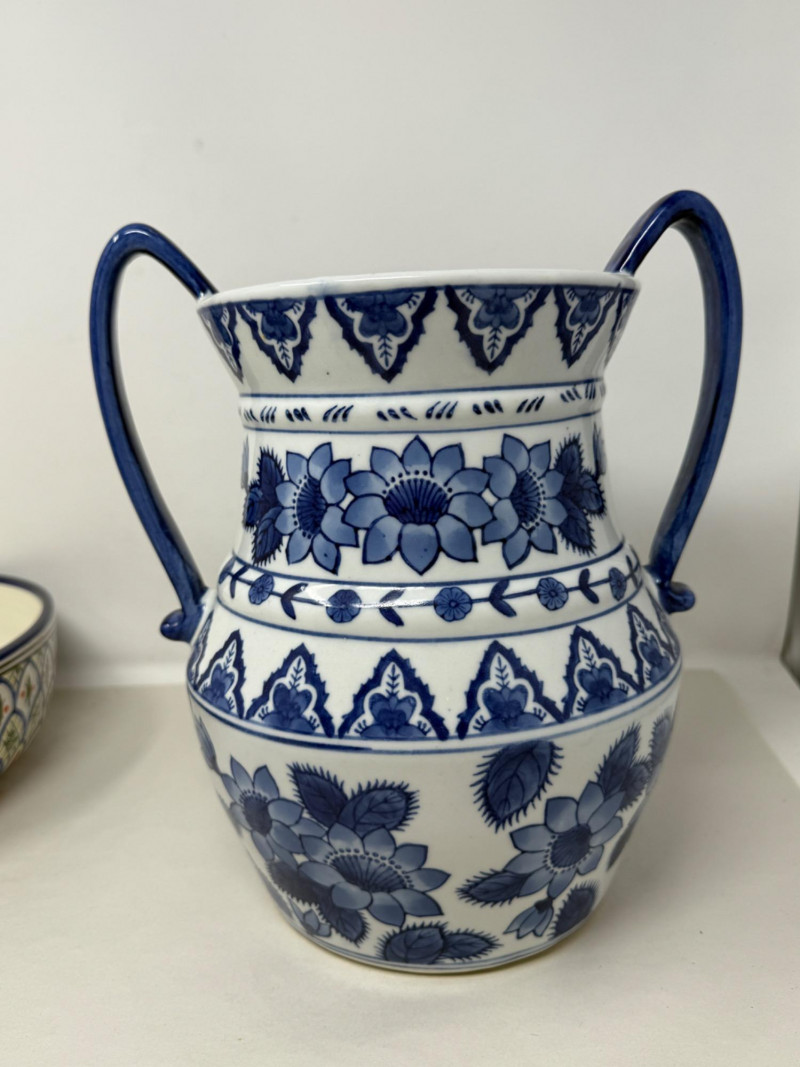 Tunisian Pottery Bowl and Blue Vessel Bowl is 12x3.5” Vessel is 10x11”