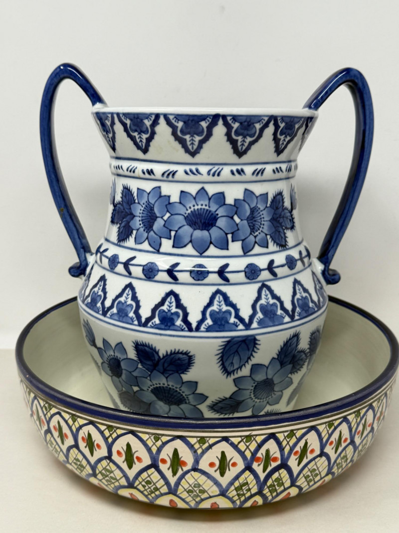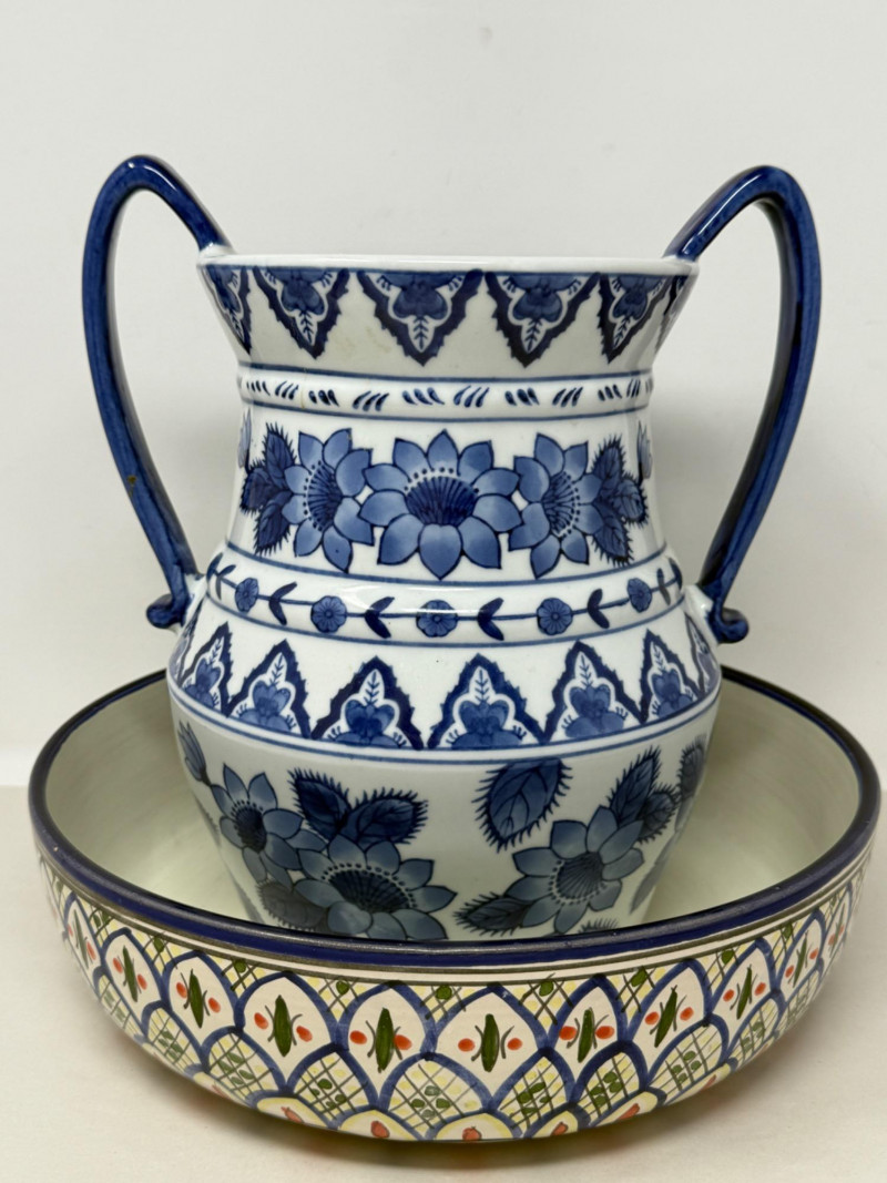 Lot # 145 - Tunisian Pottery Bowl and Blue Vessel