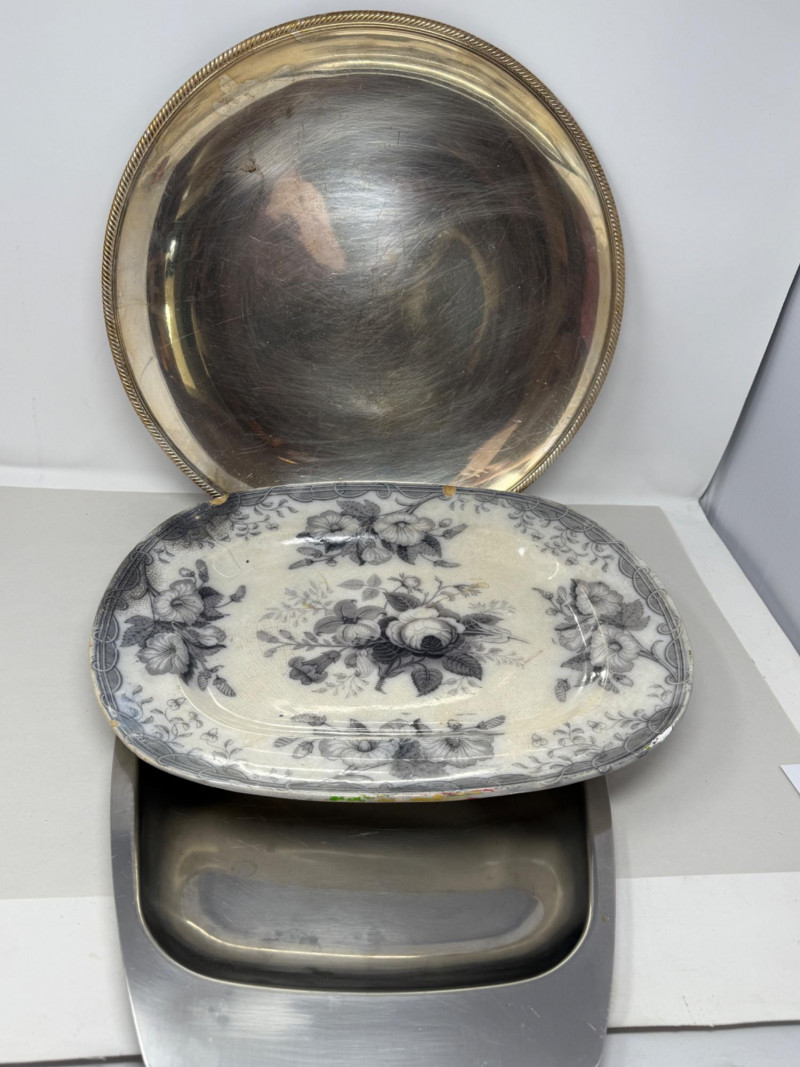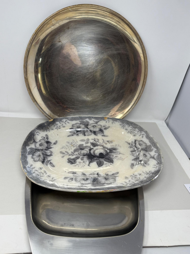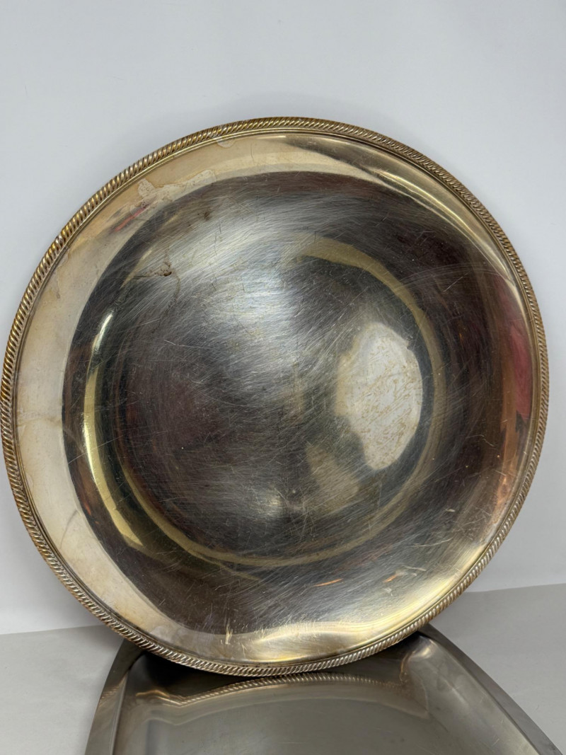 Mid 19th Century - Stainless - Silverplate Platter Trio Modern Stainless Platter 22x13.5” Castleton International Silver Co 667 Round Silverplate Platter with rope edge design 17.5”