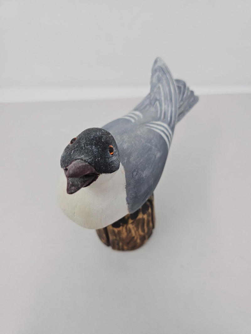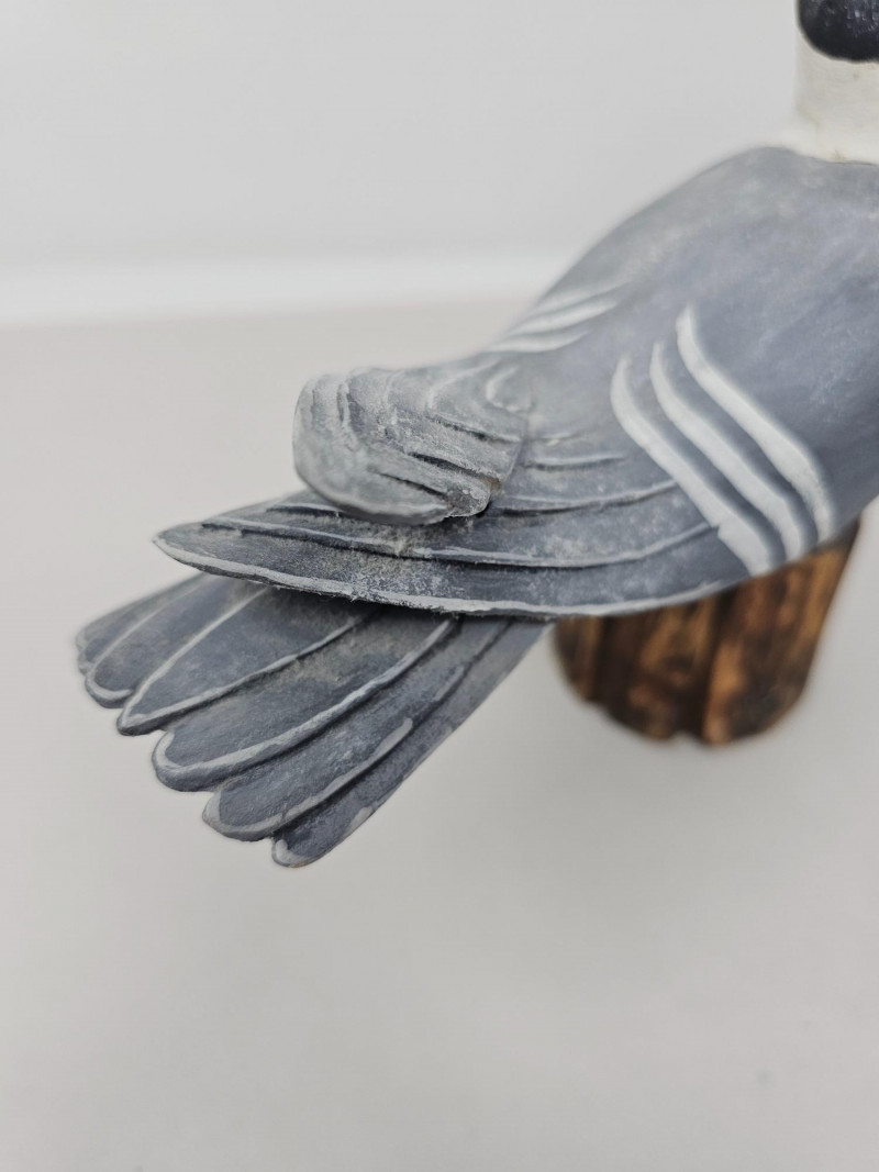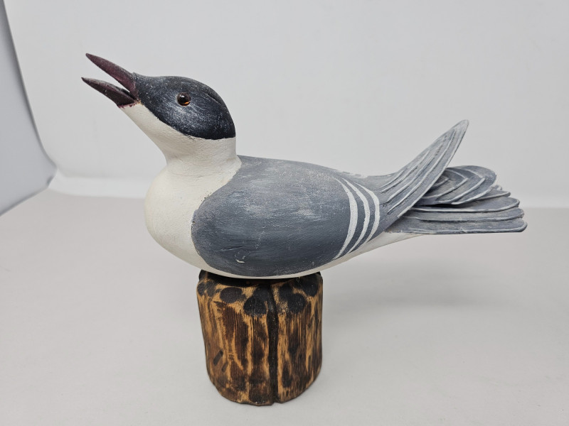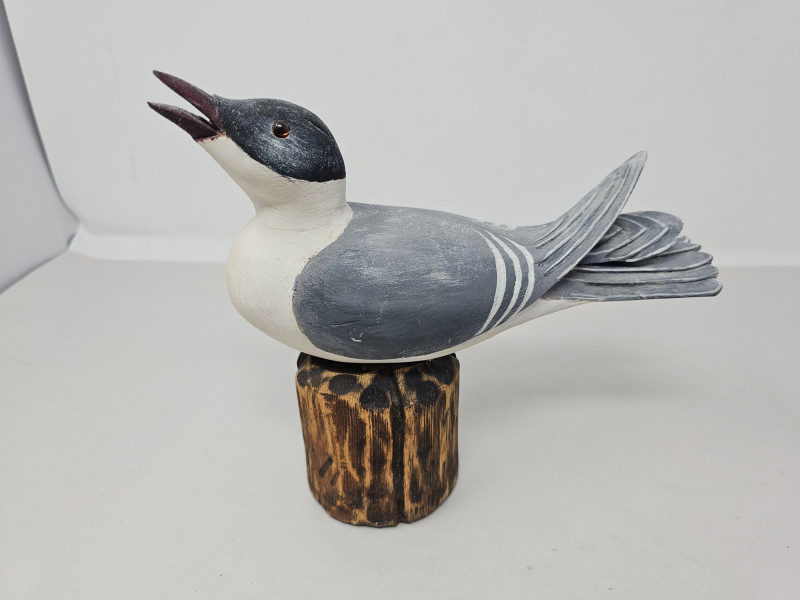 Handmade Wooden Sculpture "Gull" By Bill Sheckler Hand carved & hand painted in 1997 Very well done seagull on a piling sculpture 8"T x 9"W x 3"D