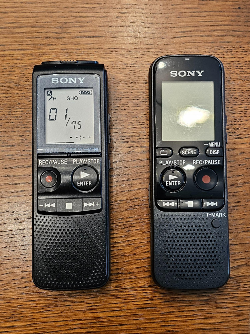 (2) Sony Handheld Digital Recorders ICD-PX720 The Sony ICD-PX720 is a compact digital voice recorder designed for recording lectures, meetings, and other audio notes Tested - Works ICD-PX333 The Sony ICD-PX333 is a popular, entry-level digital voice recorder designed for ease of use and portability. It's particularly well-suited for capturing lectures, meetings, and personal notes Tested - Wouldn't Power On Manual included for the ICD-PX720 Both require AA batteries