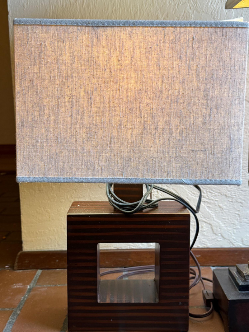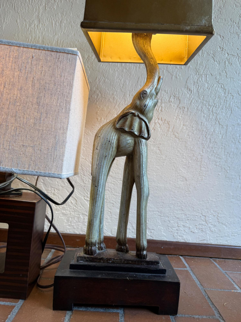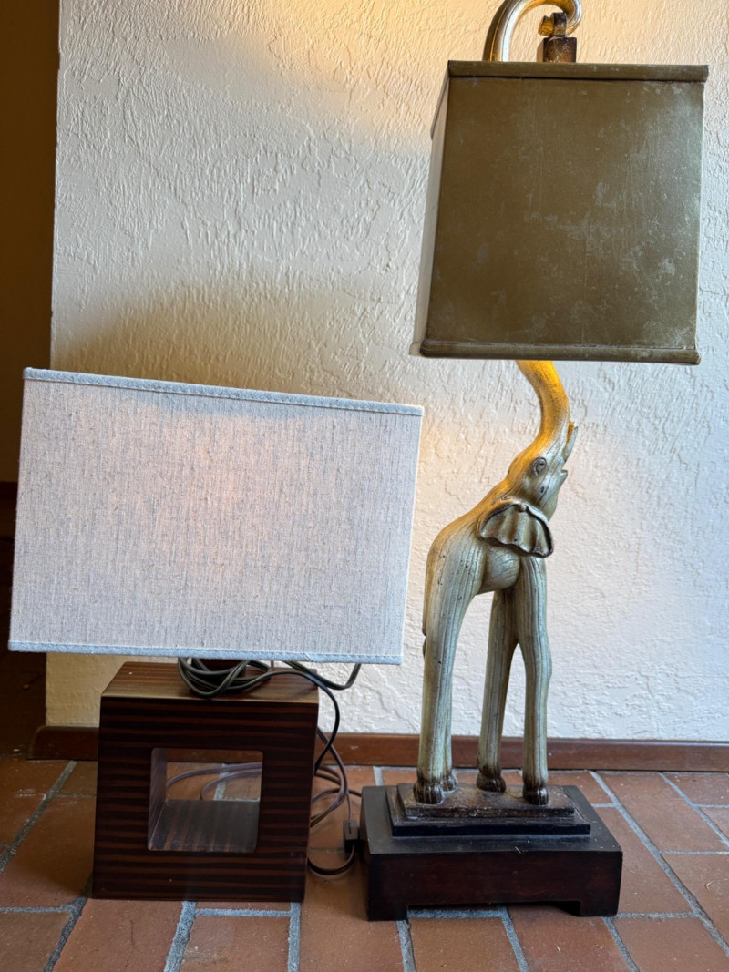 Elephant Lamp With Metal Shade & Block Wood Lamp