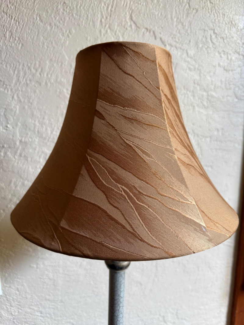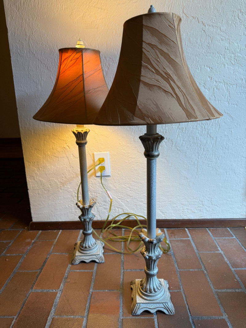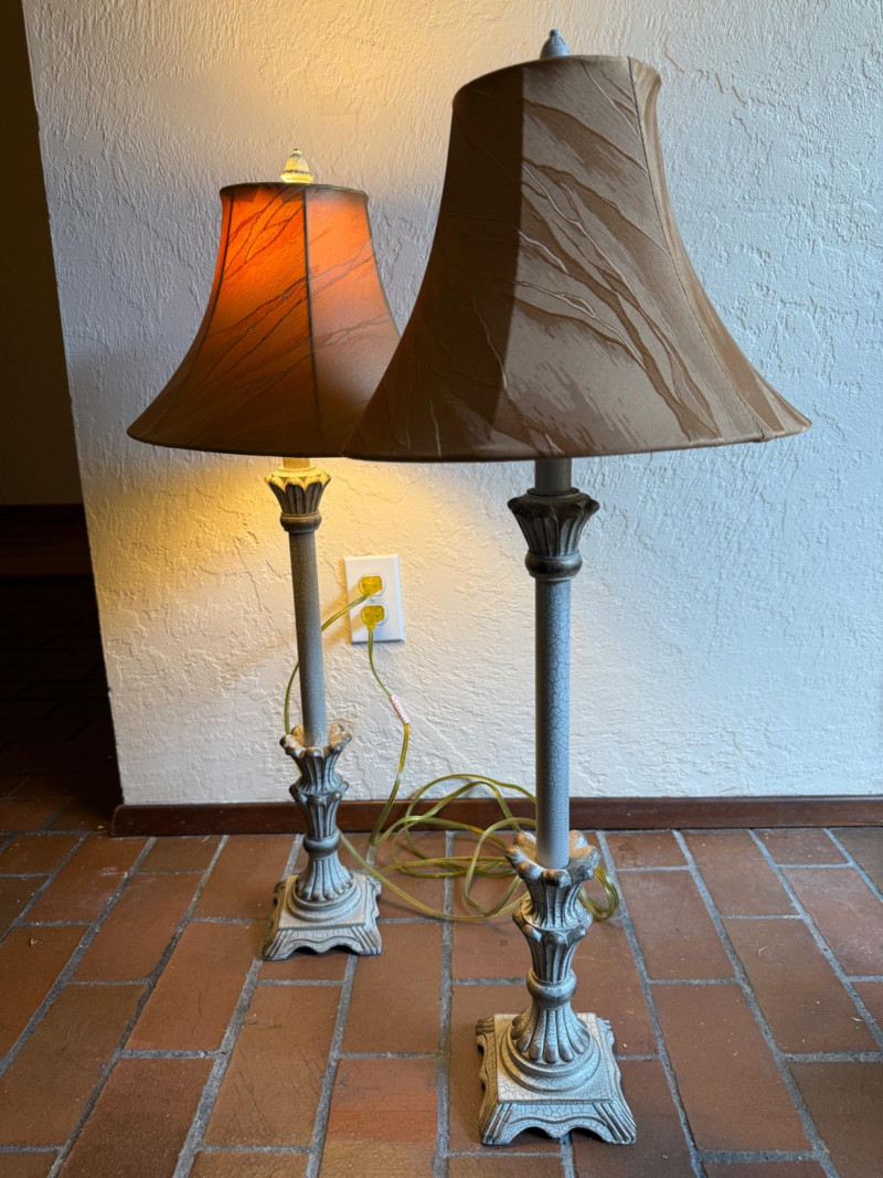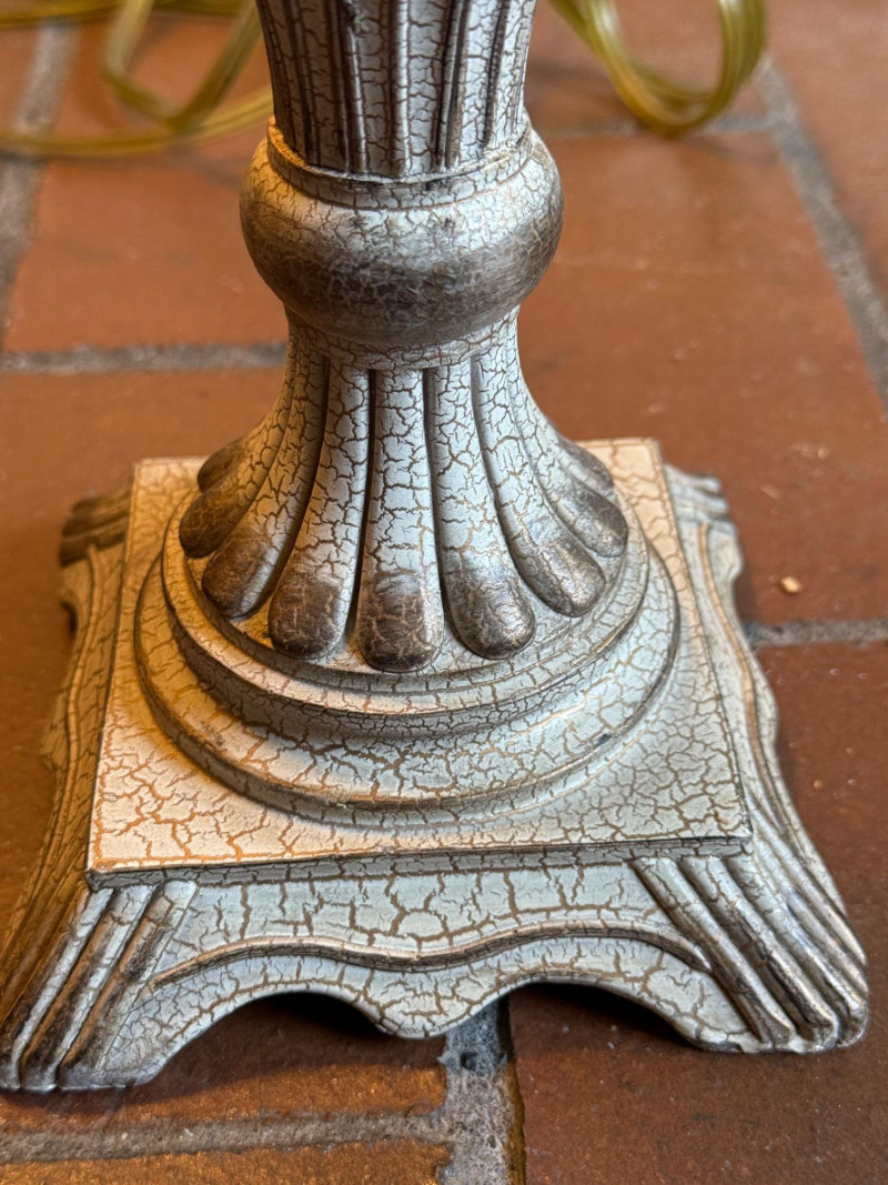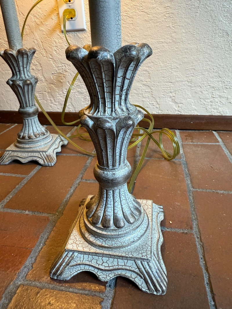 Pair of Metal with Crackle Paint Candlestick Lamps & Gold Satin Shades