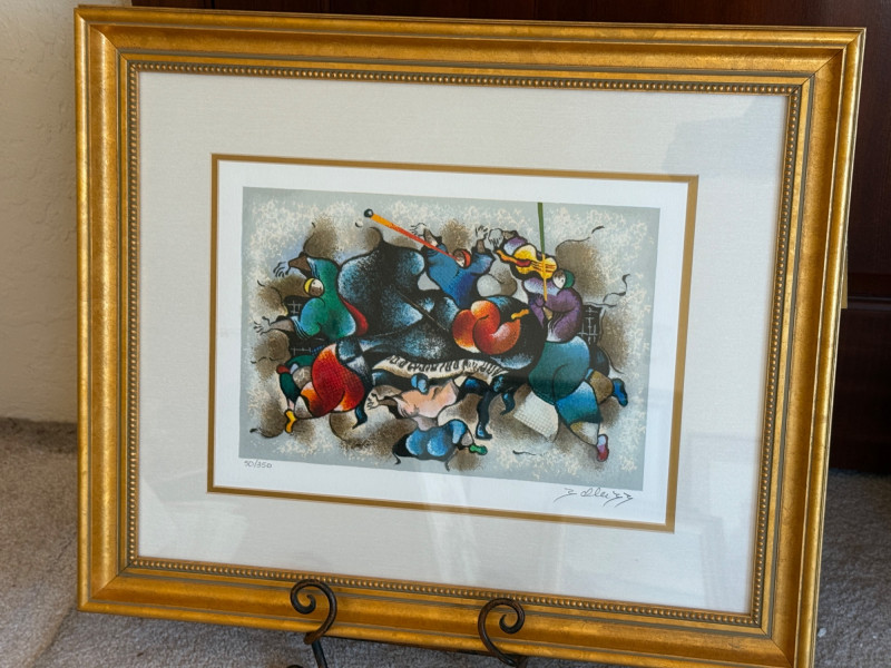 Very vibrant in gold frame. 24.75”x21” with attached Certificate of Authenticity attached on back.