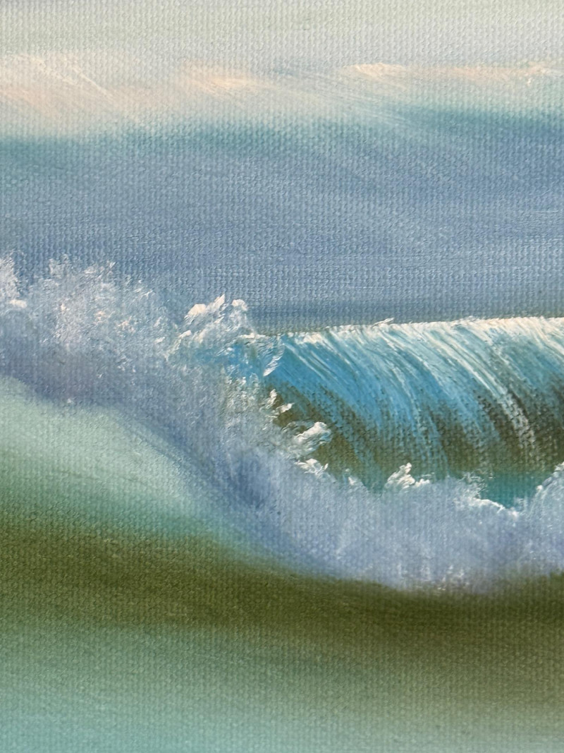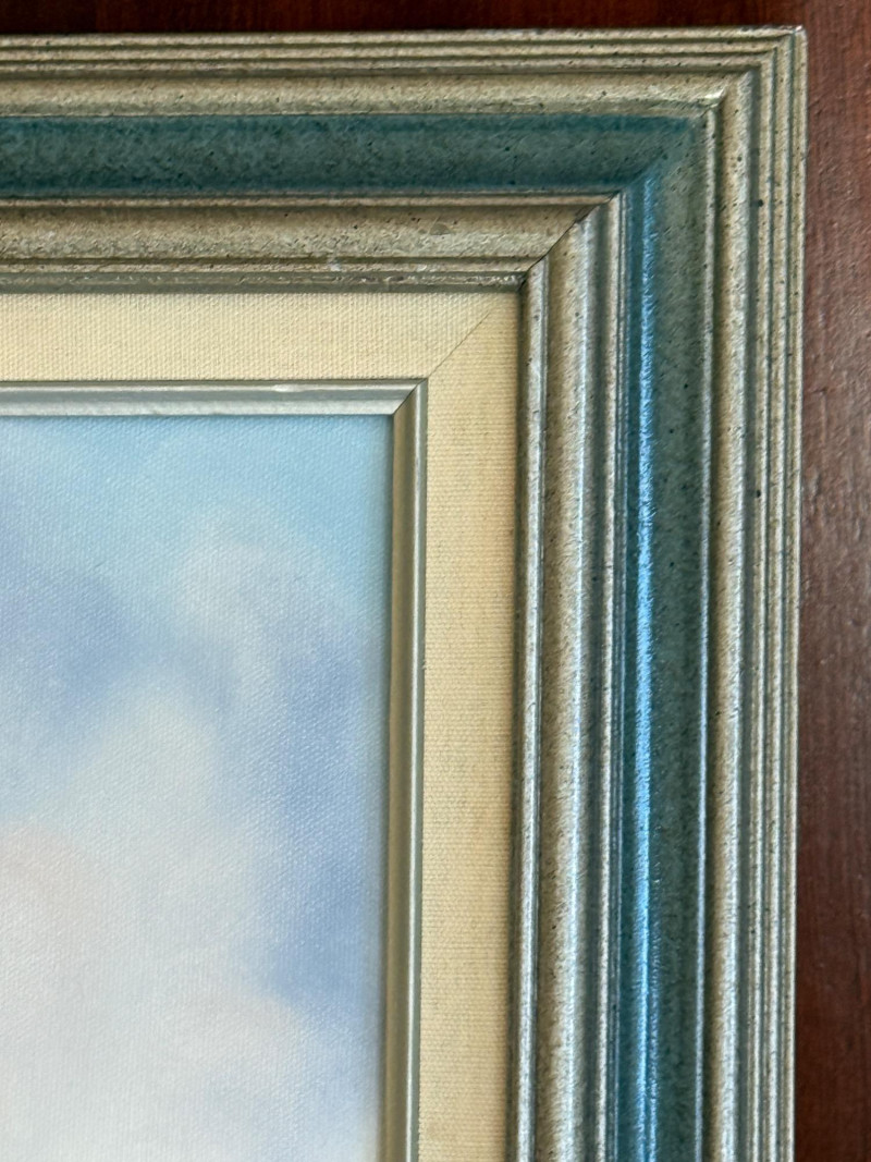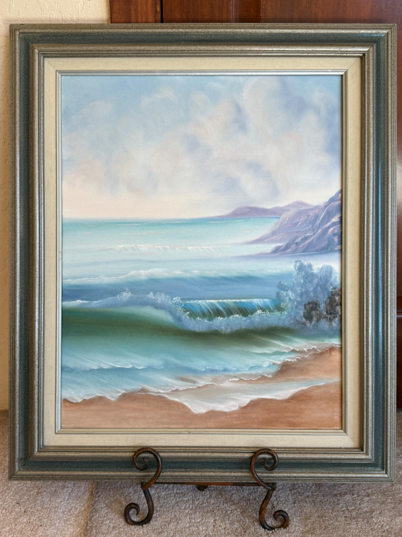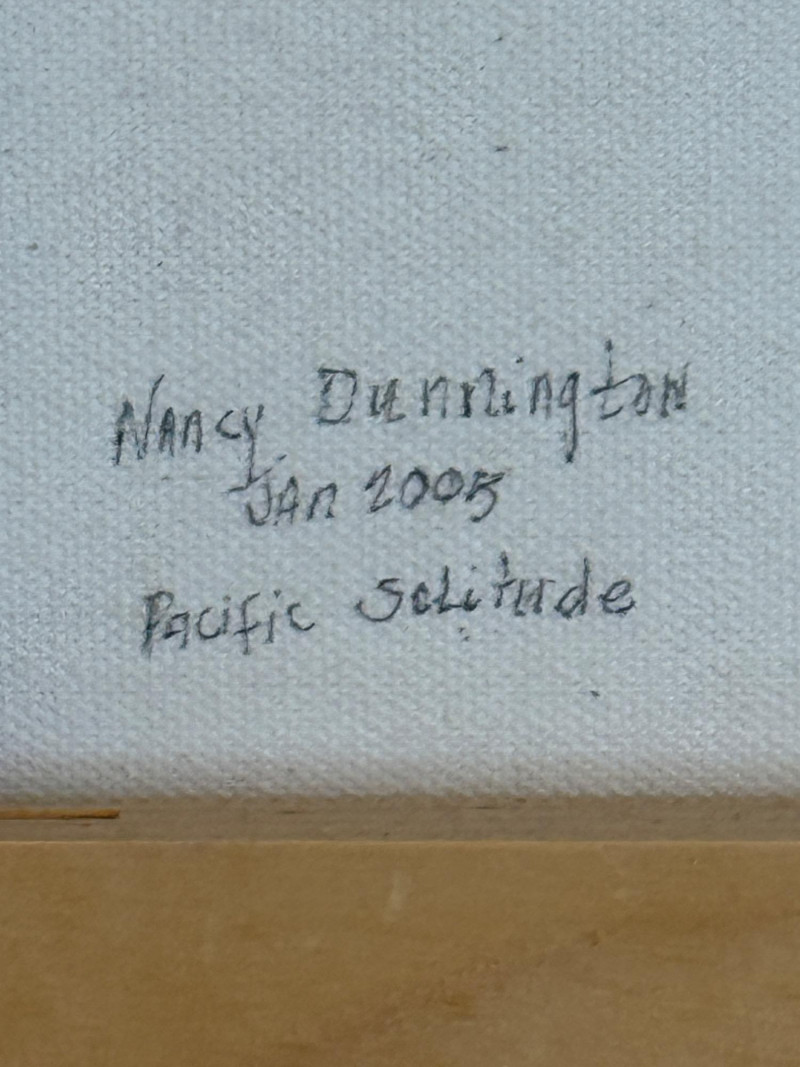 Pacific Solitude Original Acrylic on Canvas Painting by Nancy Dunnington 2005 21.5”x25.5” Wood frame with aqua accents