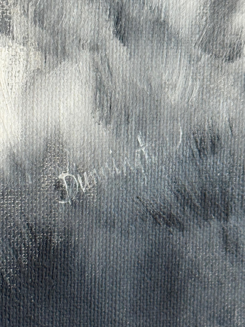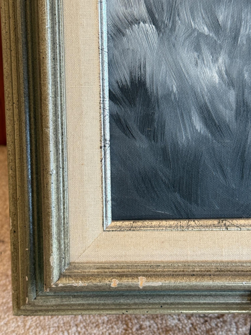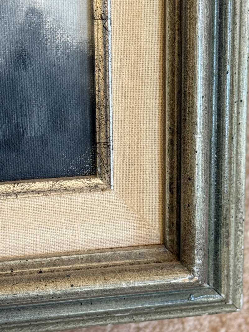 Original Acrylic Beach Cabin Painting Silver Frame signed by Dunnington Measures 21”x25”