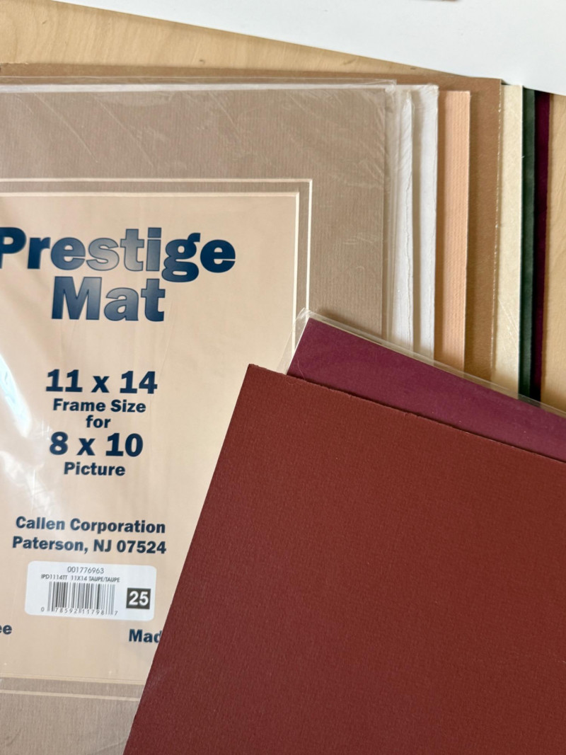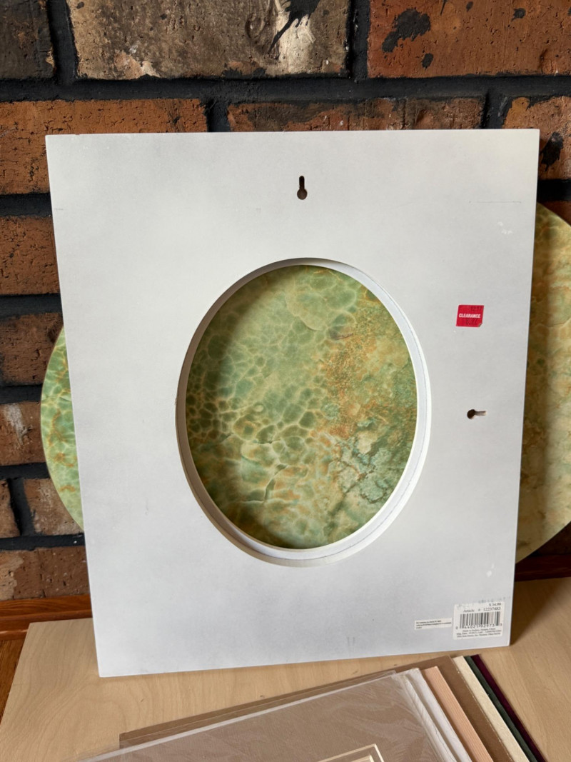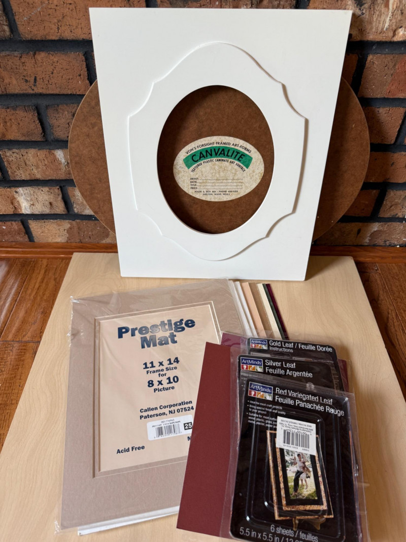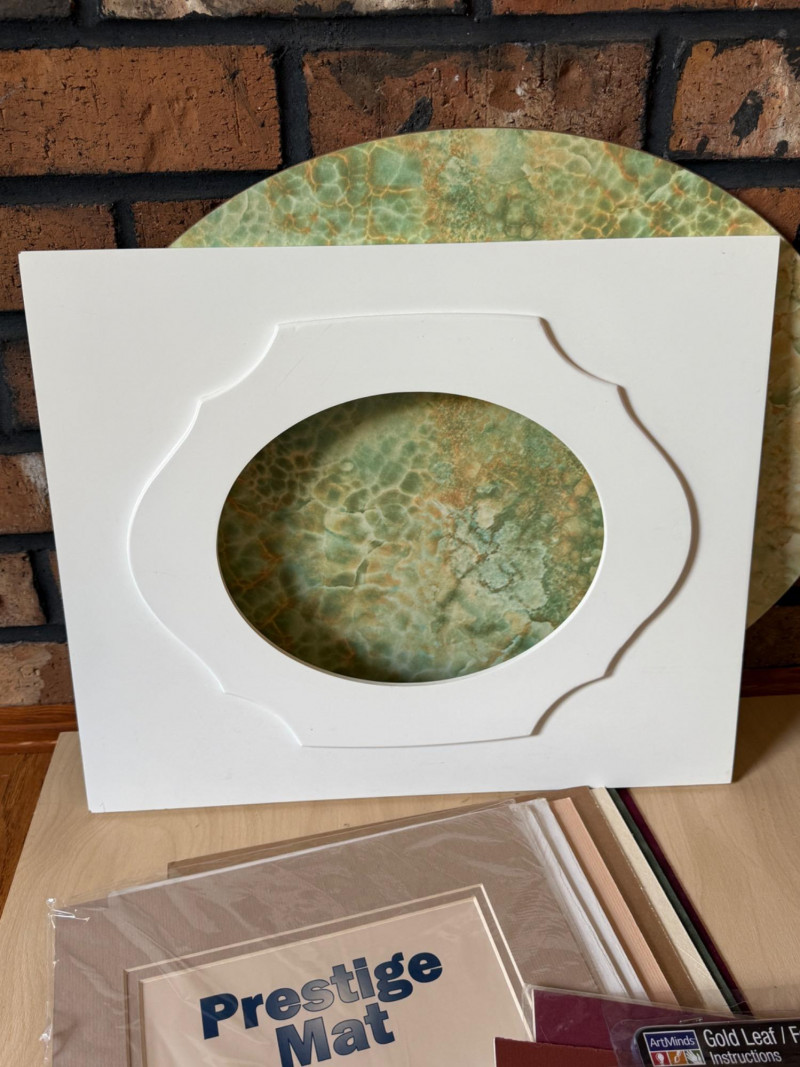 Framing - Matting - Metal Foil 10 matts silver leaf gold leaf red variegated leaf white art frame is 17x14 oval laminated art board