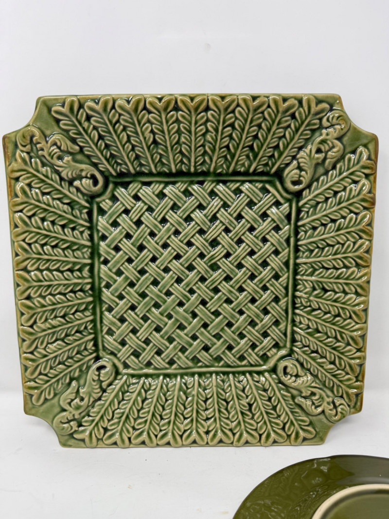 Ceramic Green Plates Lattice Square plate is 13”