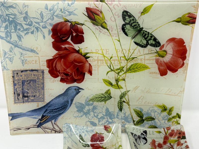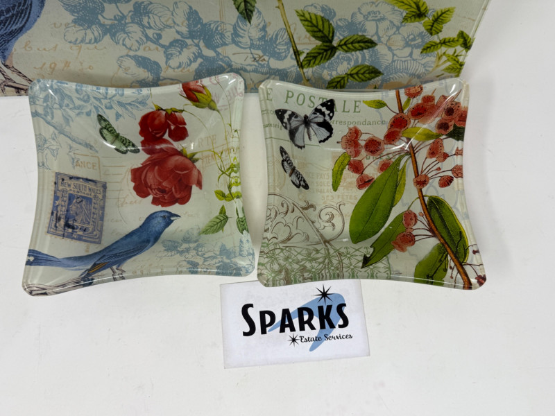 Glass Tray & Dishes & Handblown Hummingbird Feeder Tray is 15.5x12