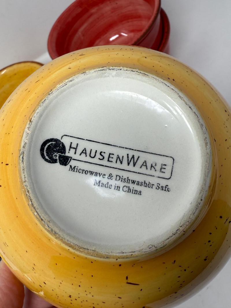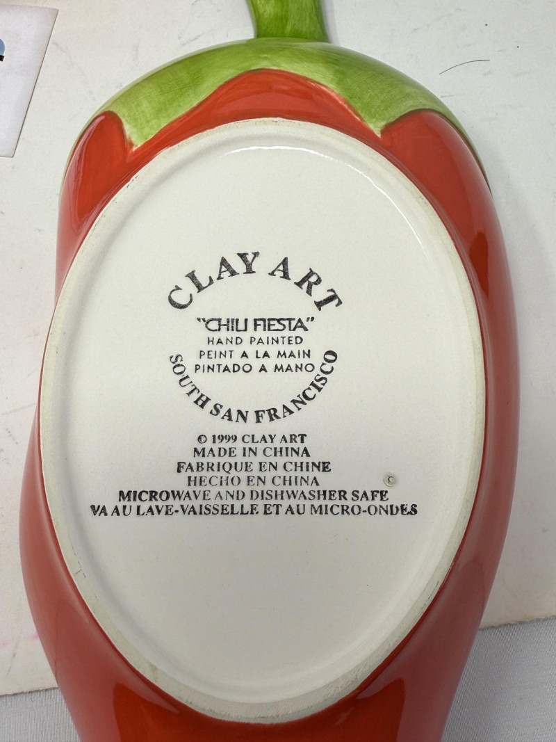 Clay Art Chili Pepper Plates 4 Hausenware Pottery Bowls Boulevard Hand Painted Enlongated Footed Dish