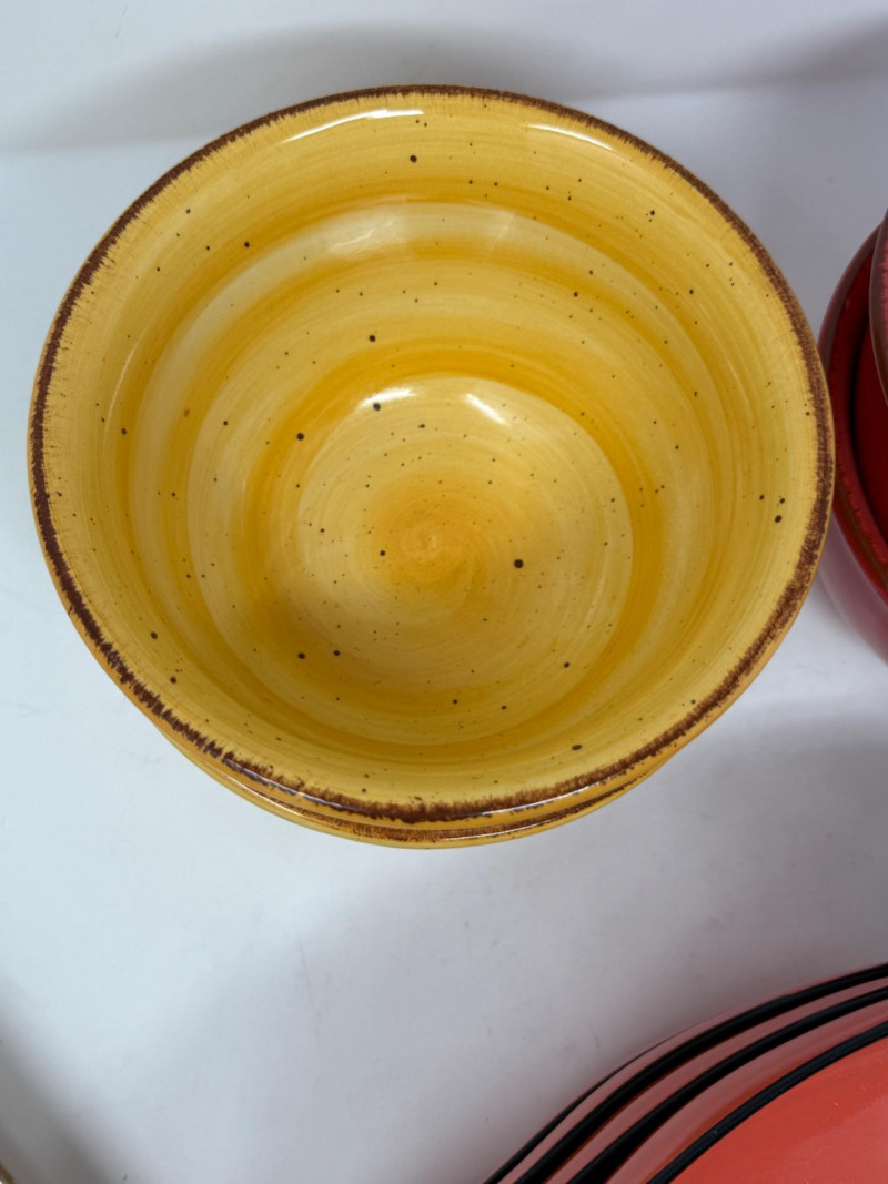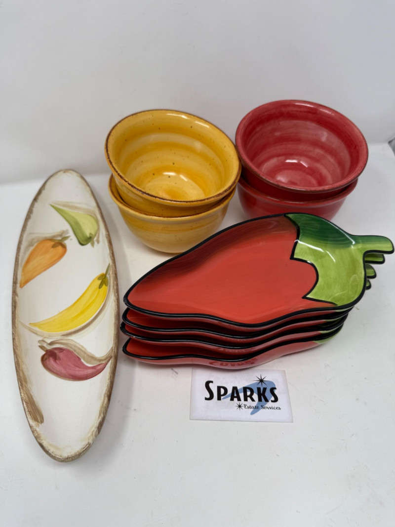 Lot # 34 - Clay Art Chili Pepper Plates and Pottery Bowls