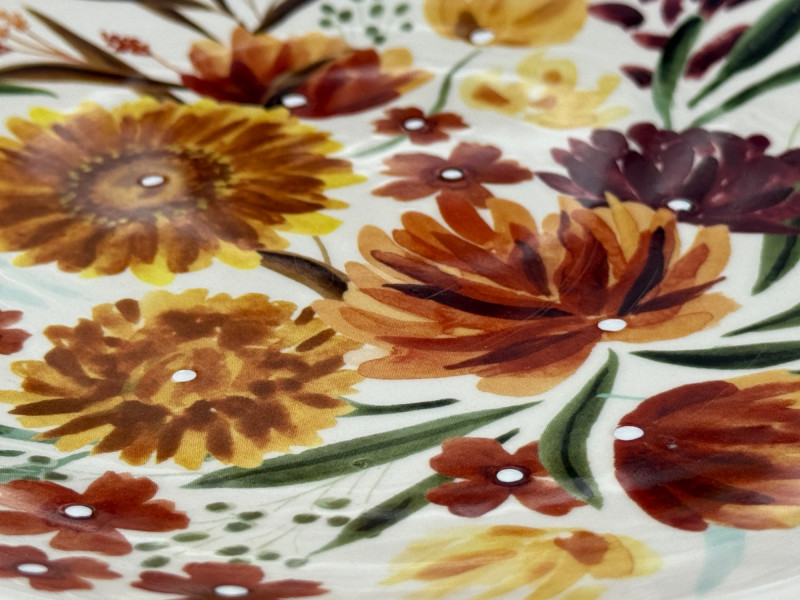 Porcelain Grape Leaves & Floral Plates by Gallery 4 Plates are 8.5” and each white dot is slightly raised. 2 Grape Leaf Plates