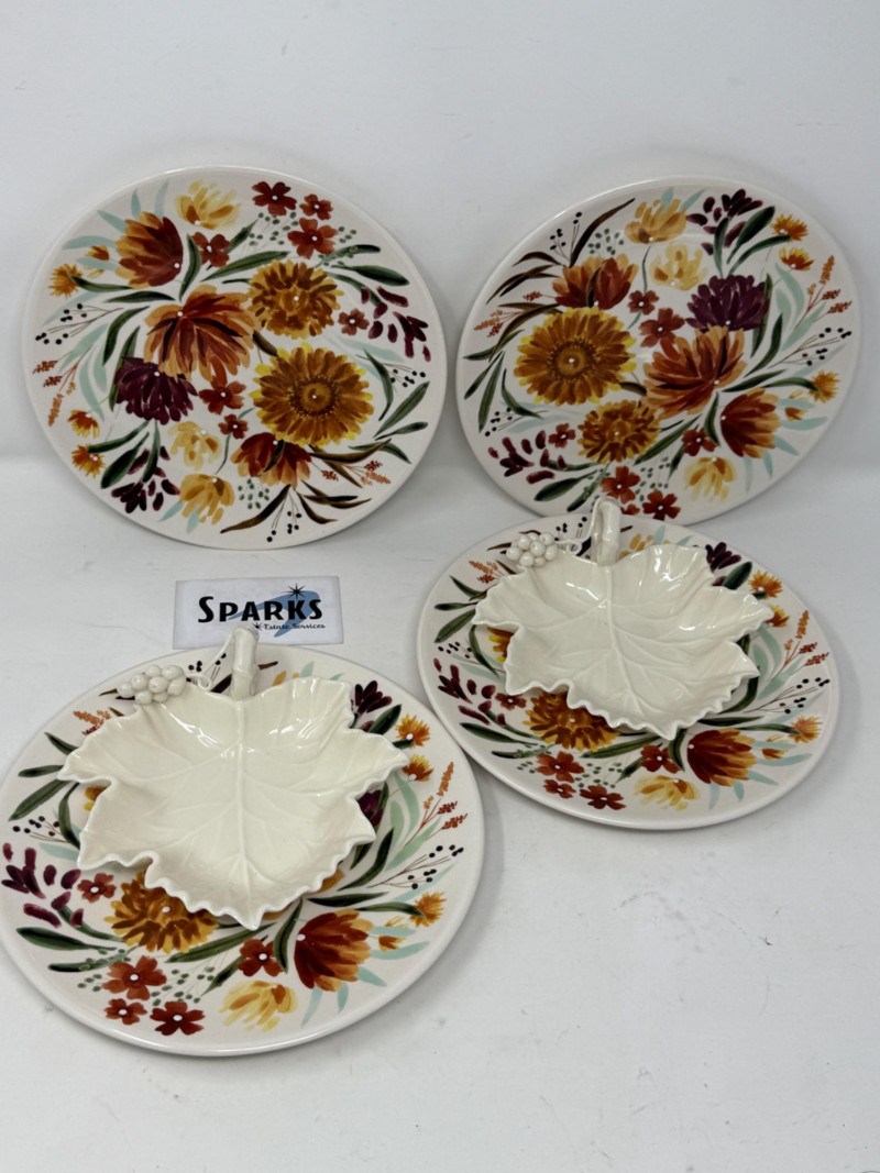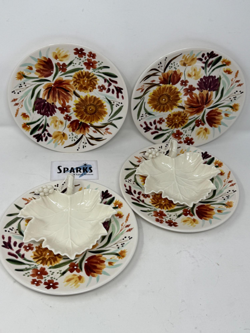 Lot # 35 - Porcelain Grape Leaves & Floral Plates by Gallery