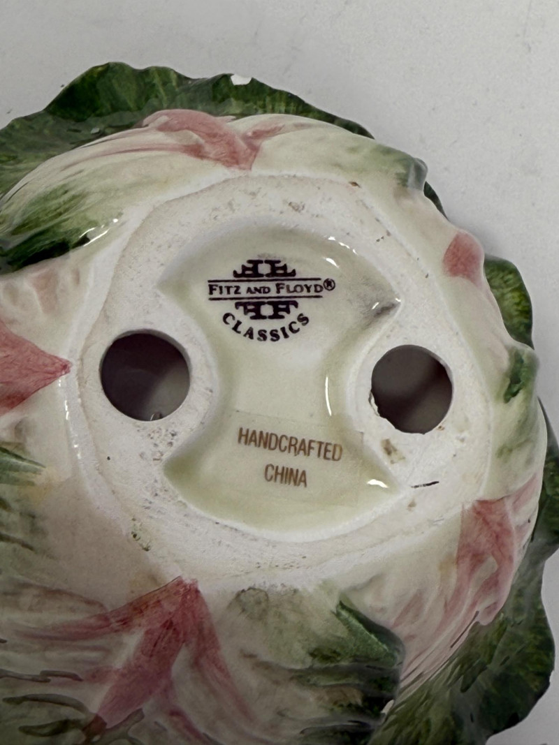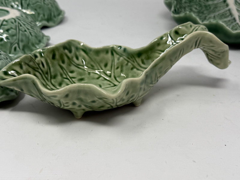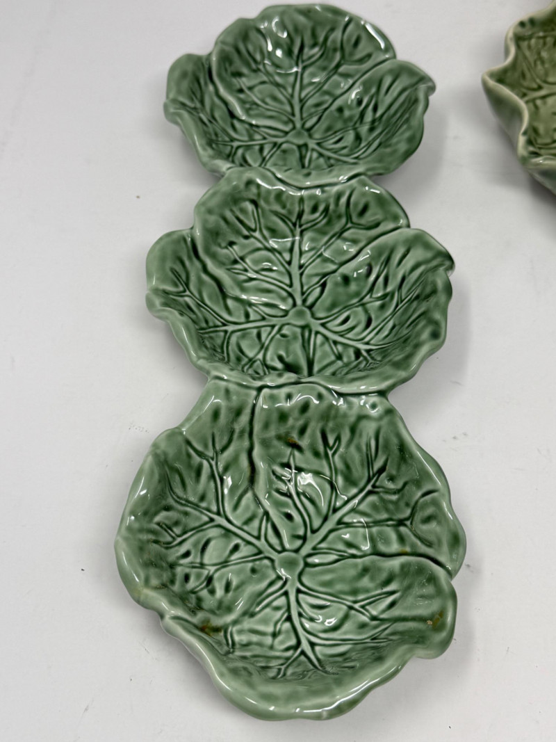 Cabbage Leaf Collection 8.5” Plate 3 section dish Fitz and Floyd candle holder 2 small glass dishes 2 spoon rests