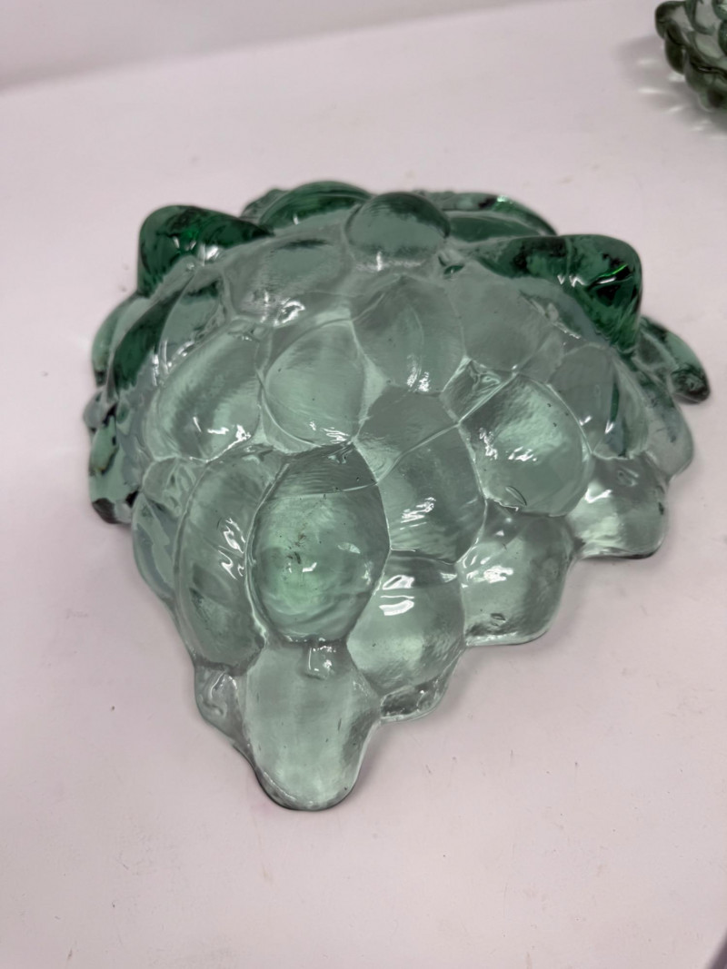 MCM Green Grape Glass Shallow Bowl Set Largest is 9.5x10x2 Heavy glass pieces.