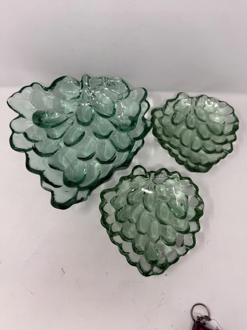 Lot # 43 - (3) MCM Green Grape Glass Shallow Bowl Set