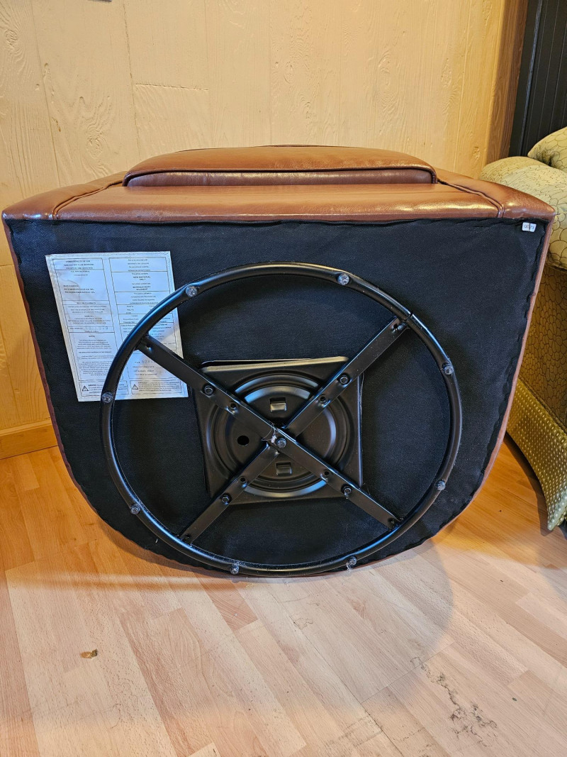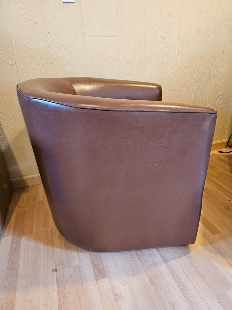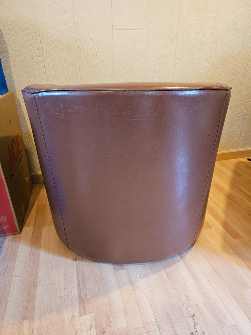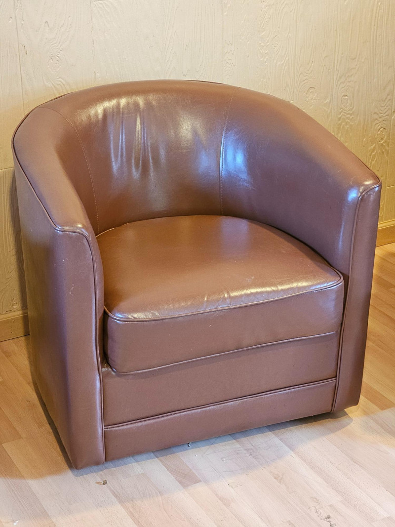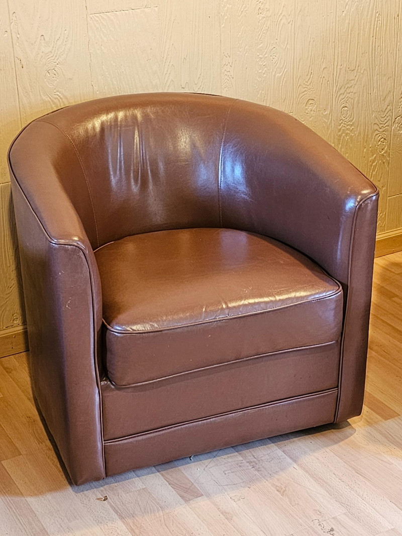 Brown Faux Leather Swivel Club Chair Mfg in 2020 Nice looking club chair will accent just about any room Thick foam seat is very comfortable and swivel action is nice & smooth In good condition 28.5"T x 30.5"W x 30.5"D