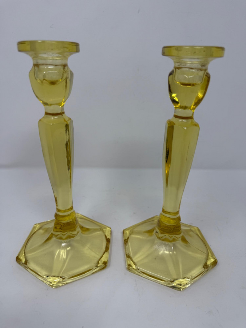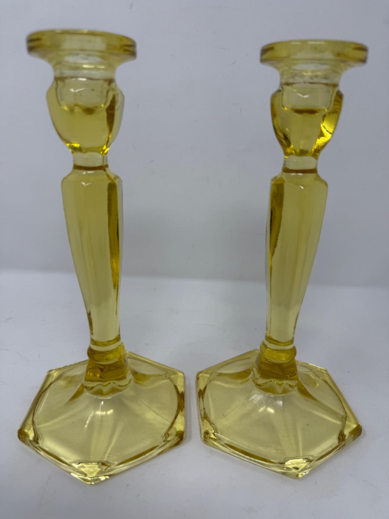 Lot # 80 - Canary Yellow Fenton Glass Candlesticks