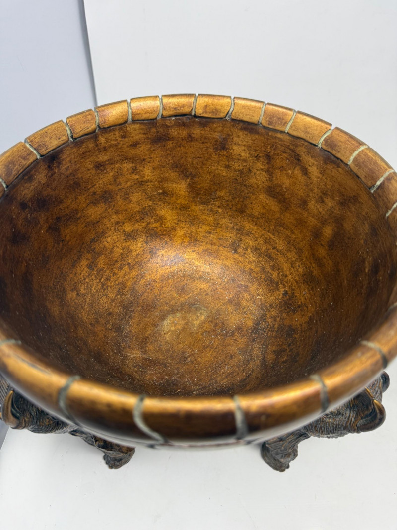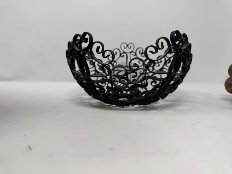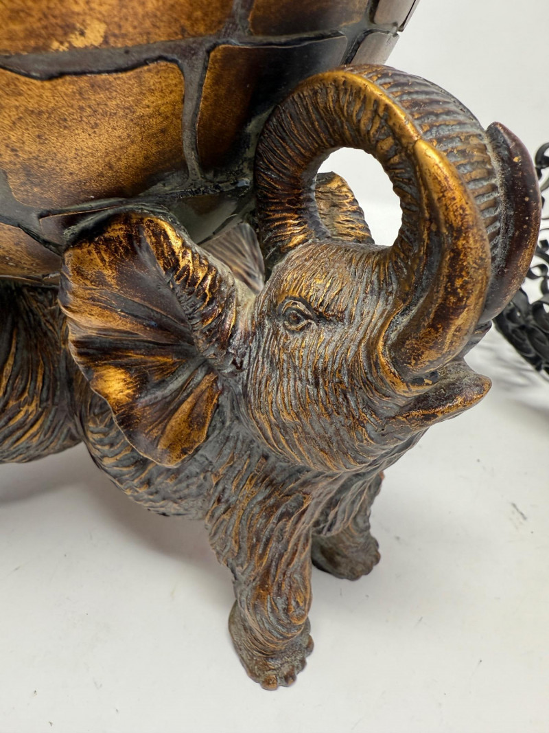 Lot # 82 - Bronze Pottery Elephant Bowl & Spanish Iron Bowl & Fruit