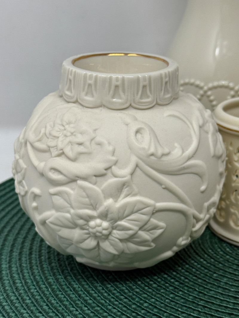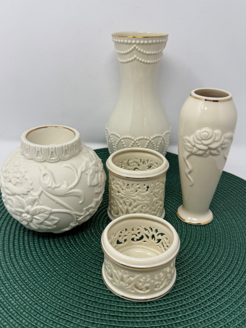 Lenox porcelain china collection. Lenox Porcelain China Vases and Candle Holders Beaded design vase is 7.5x3.5” Ball votive vase is 4.5”