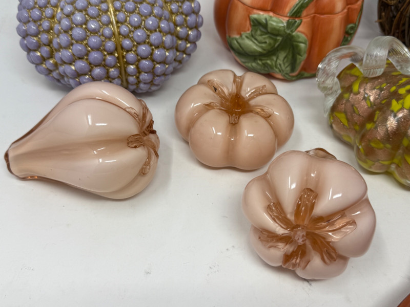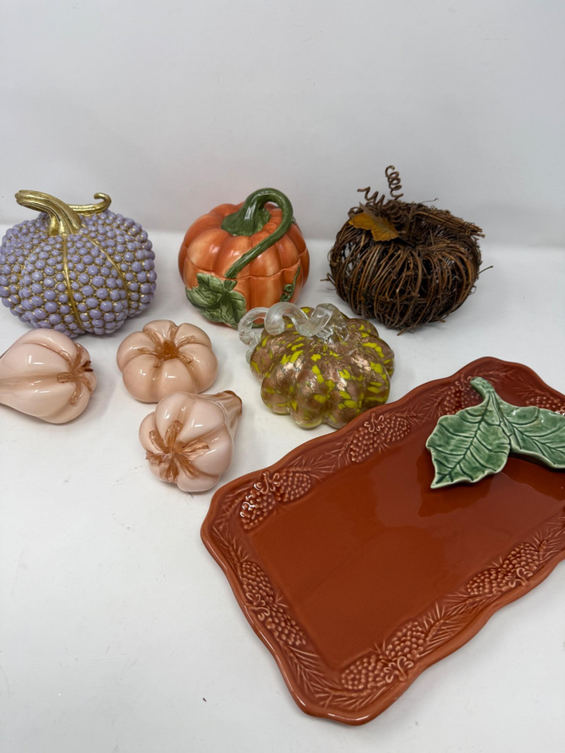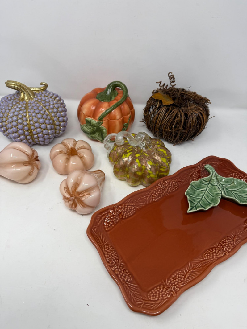Lot # 99 - 12 Piece Pumpkins and Fall Decor - Bordallo Pinheiro Leaves