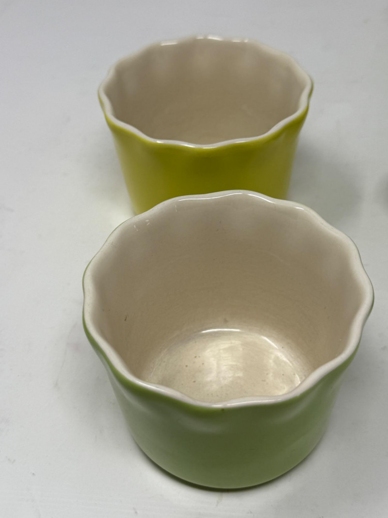 Ceramic Egg Cups & More Hand crafted bud vase signed D Ball in cup salt and pepper set spoon rest egg cups Mayfair and Jackson fluted custard cups 12 Pieces Total