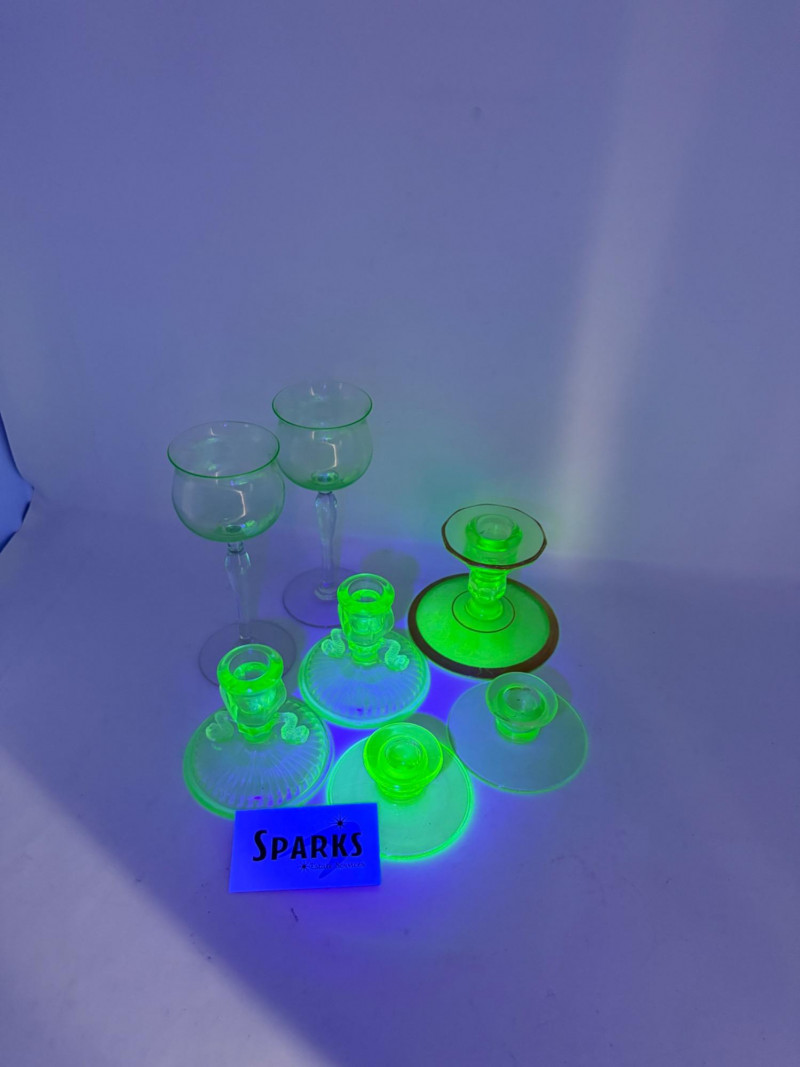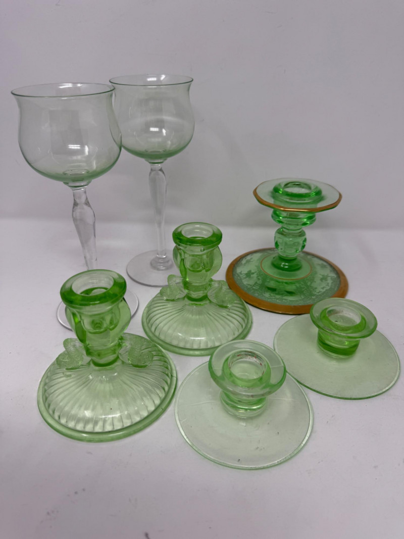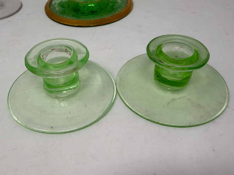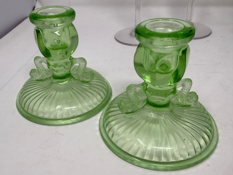 Lot # 108 - (3) Uranium Glass Candle Holder Pairs +