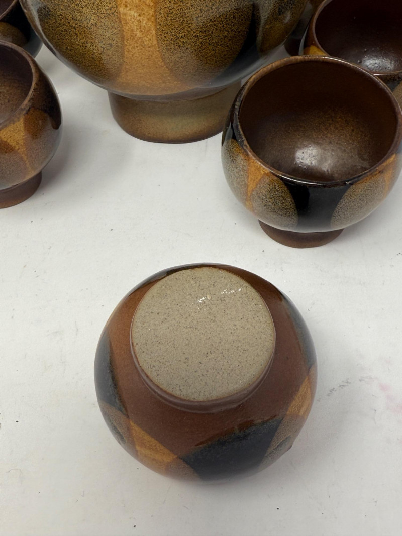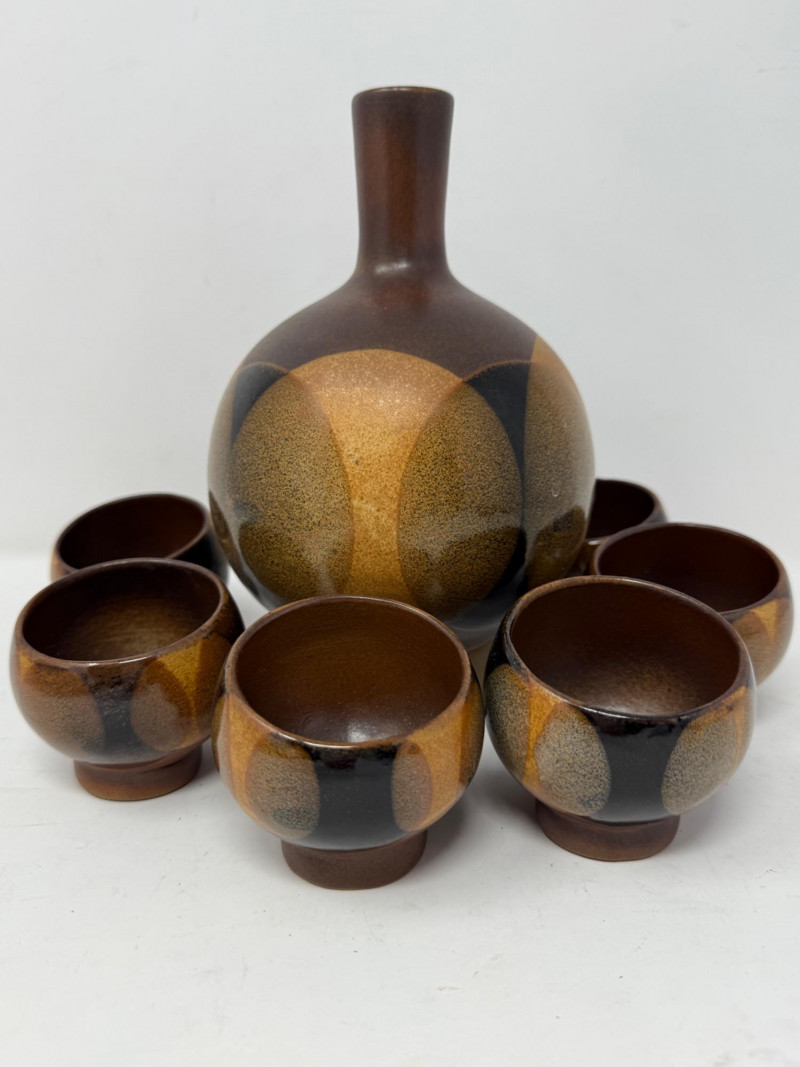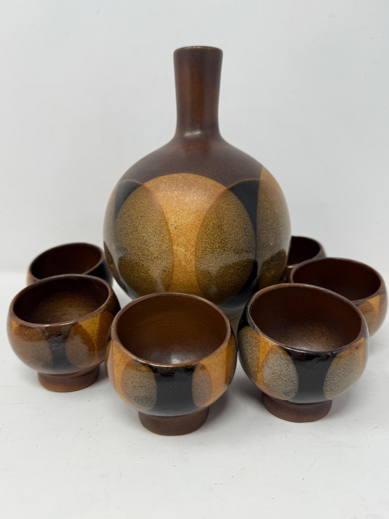 Lot # 125 - MCM Pottery Decanter and 6 Cups