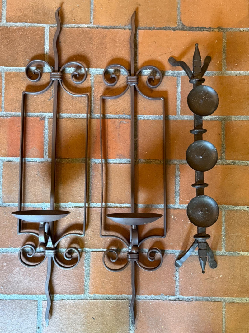Wrought Iron Candle Holder and Sconces 3 Candle holder is 8.5x3.5x4”