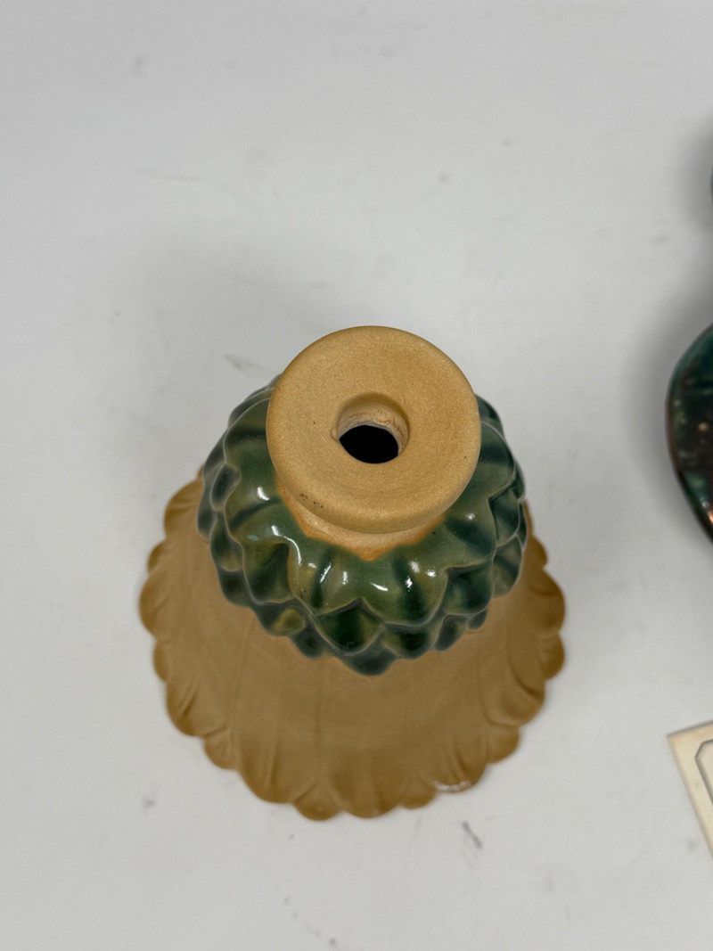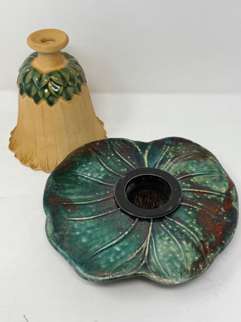 Lot # 144 - Raku Fired Flower Vase & Watering Bells Clay Watering Bell