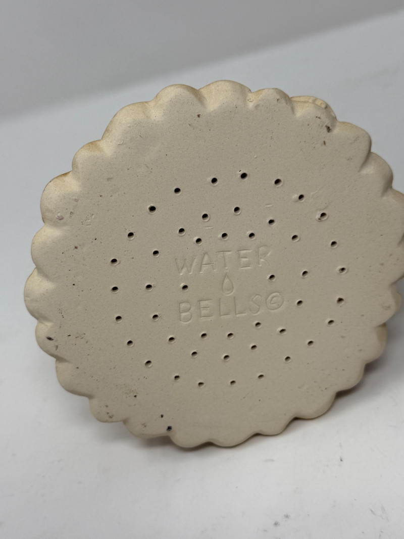 Raku Fired Flower Vase & Watering Bells Clay Watering Bell Clay water bell made by Watering Bells. Soak the bell in water and hold your thumb over the top hole. Uncover the hole to release the water. (like a straw)
