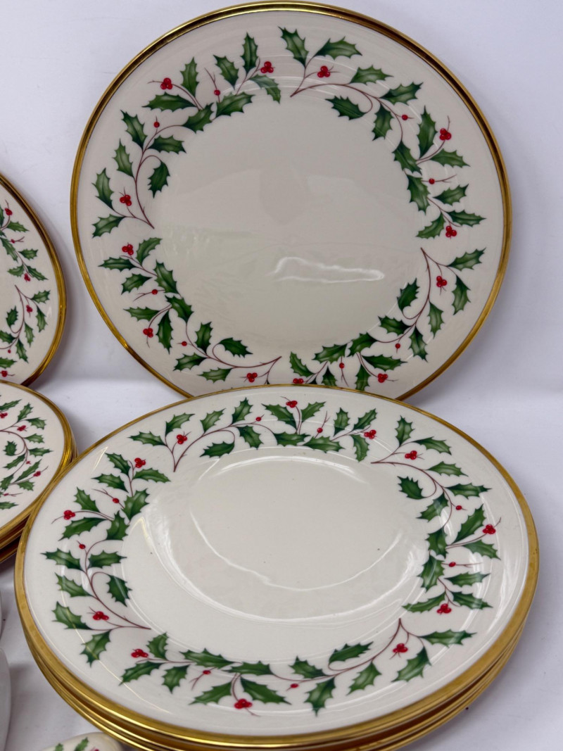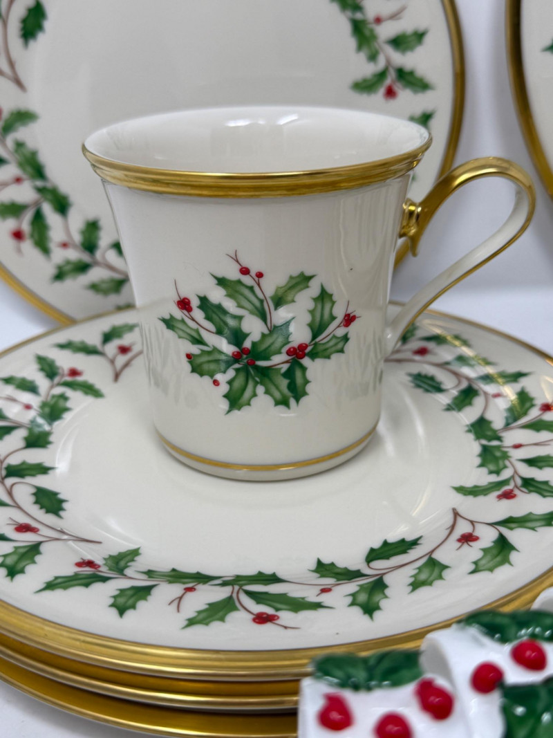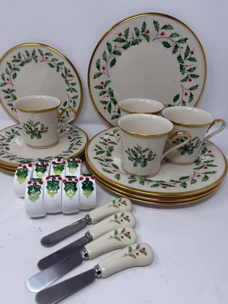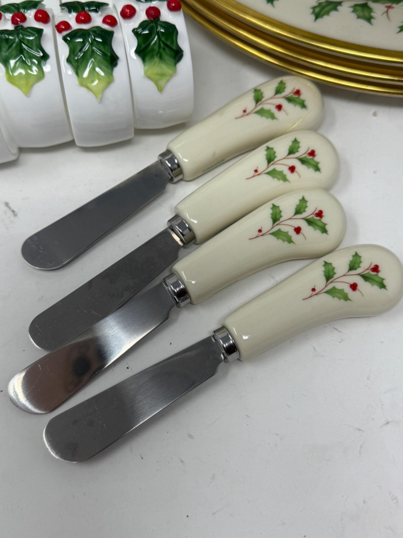 Lenox Holiday Dimension Collection For 4 4 Dinner plates 4 salad plates 4 cups 4 ceramic handle spreaders 8 ceramic non-Lenox napkin rings