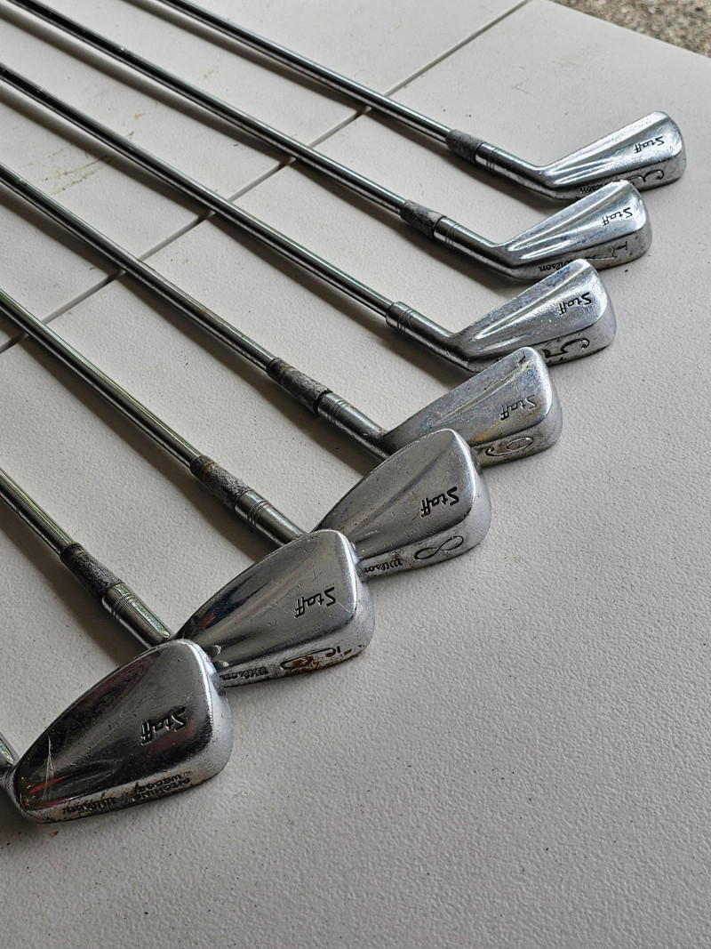Vintage Wilson Staff Irons 3 - 6, 8,9, PW & Driver Steel Shafts Griprite Grips For Right-Handed Players These clubs appear in fair condition and have been well used (see pics). Driver has a wood face and chip in toe.