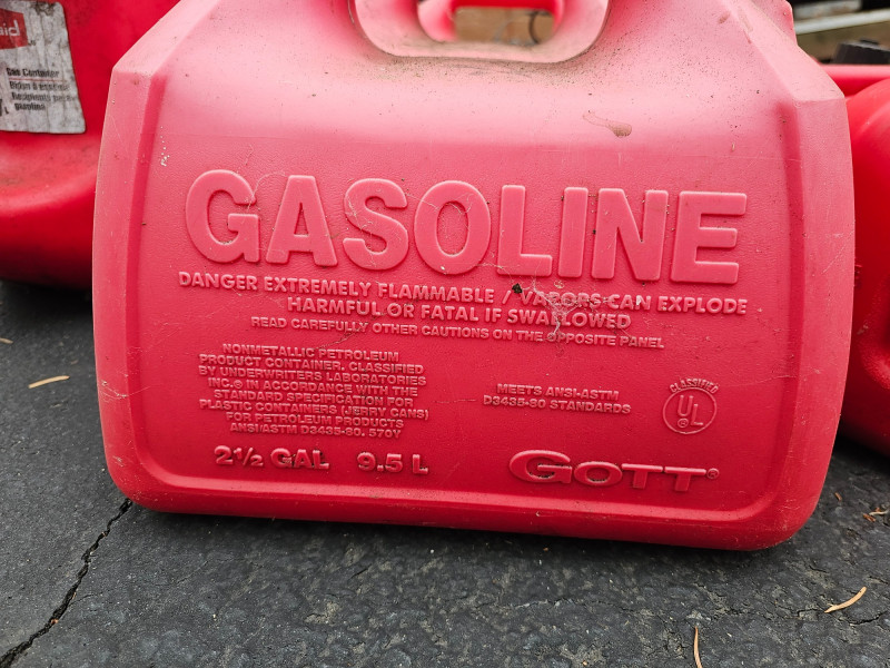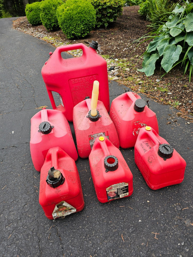 (7) Gas Cans (3) 1 gallon (3) 2.5 gallon (1) 6 gallon Most are already empty