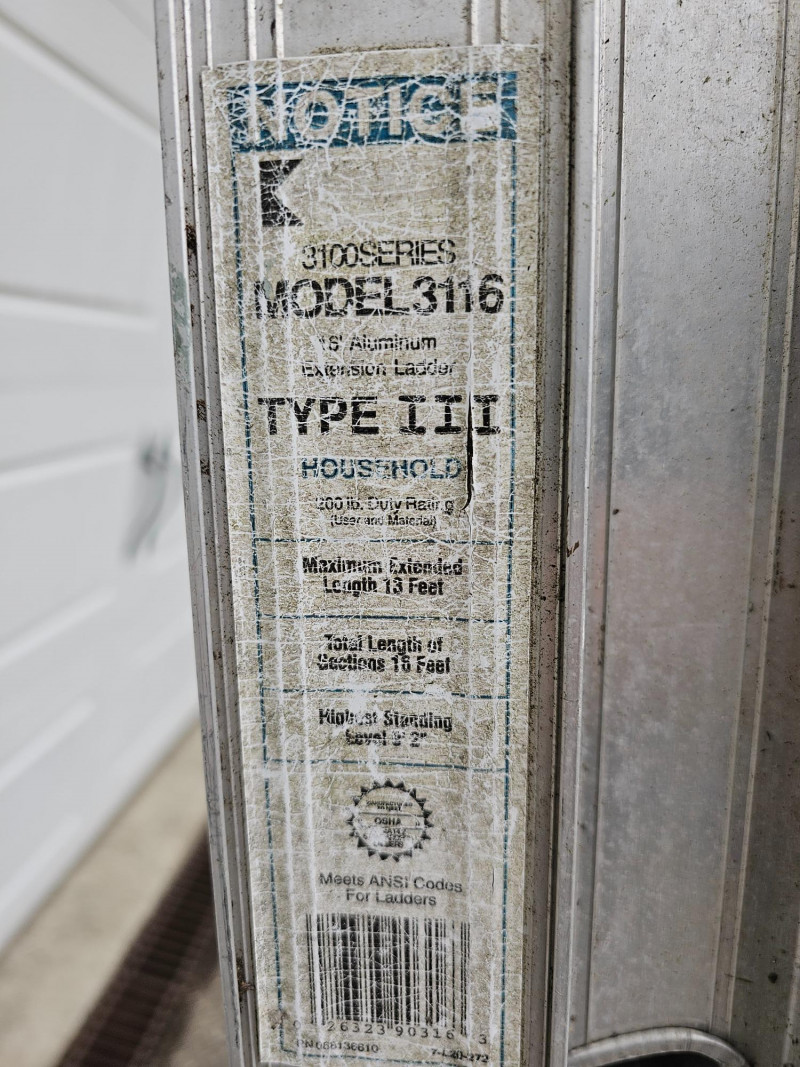 Keller 16' Aluminum 3100 Series Extension Ladder Model 3116 Type III 200lb Duty Rating Max extended length 13' Total length of sections 16'