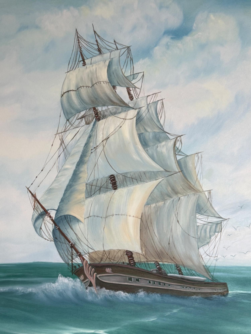 Lot # 208 - Sailing Ship Original Acrylic Painting by N. Dunnington